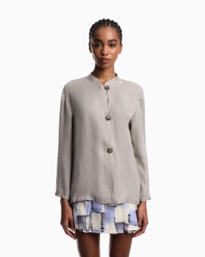Flowing washed Lyocell shirt with guru collar