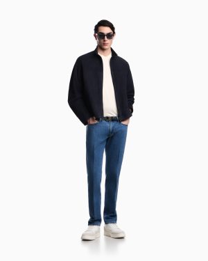 Long-sleeved polo shirt in a Lyocell blend jersey with a rounded micro eagle