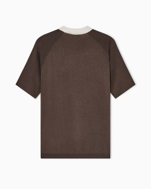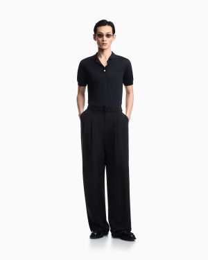 Plain-knit Lyocell-blend jumper with polo shirt collar