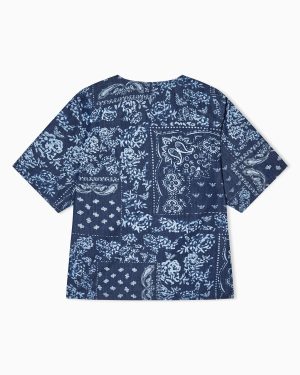 Bandana print chambray blouse