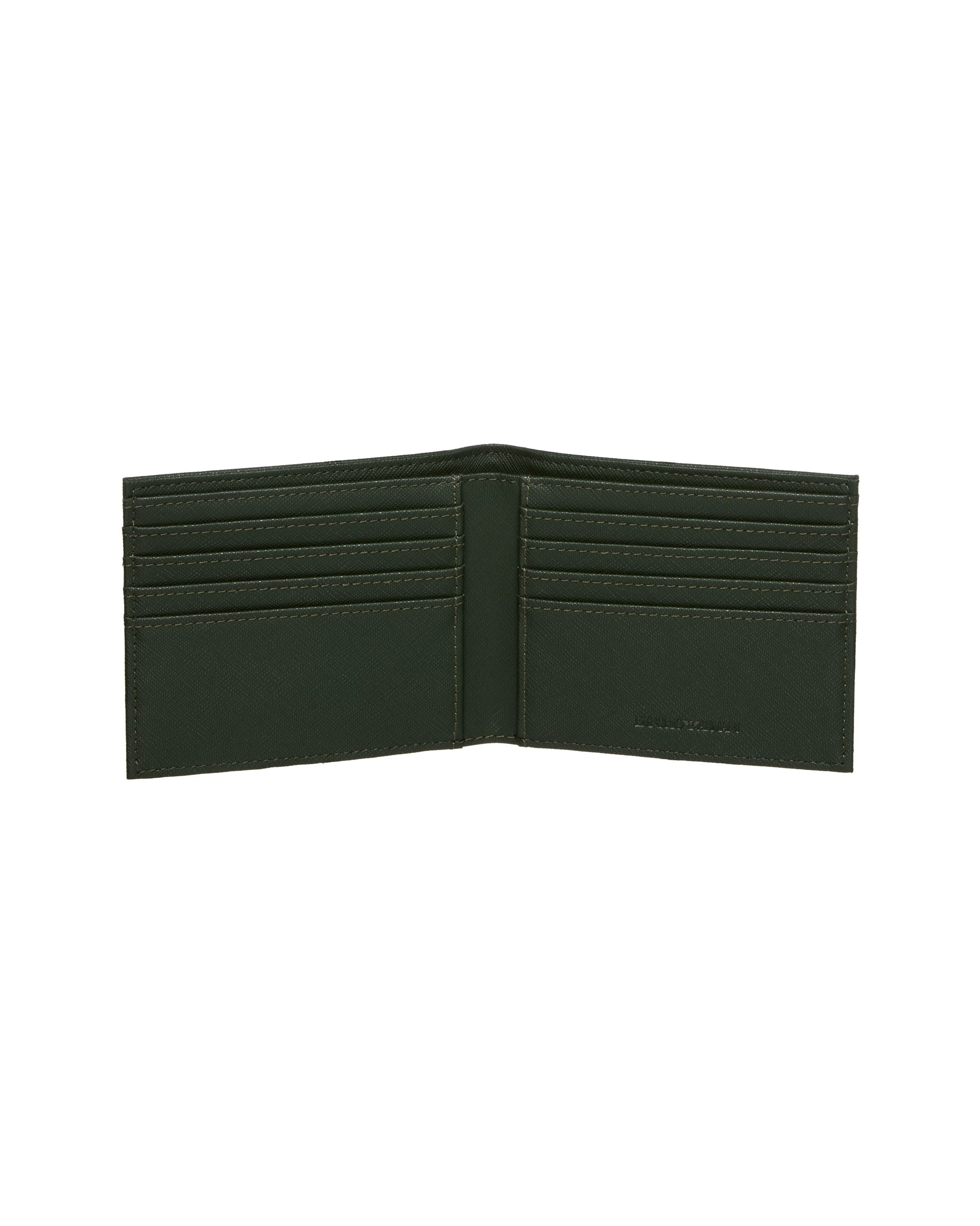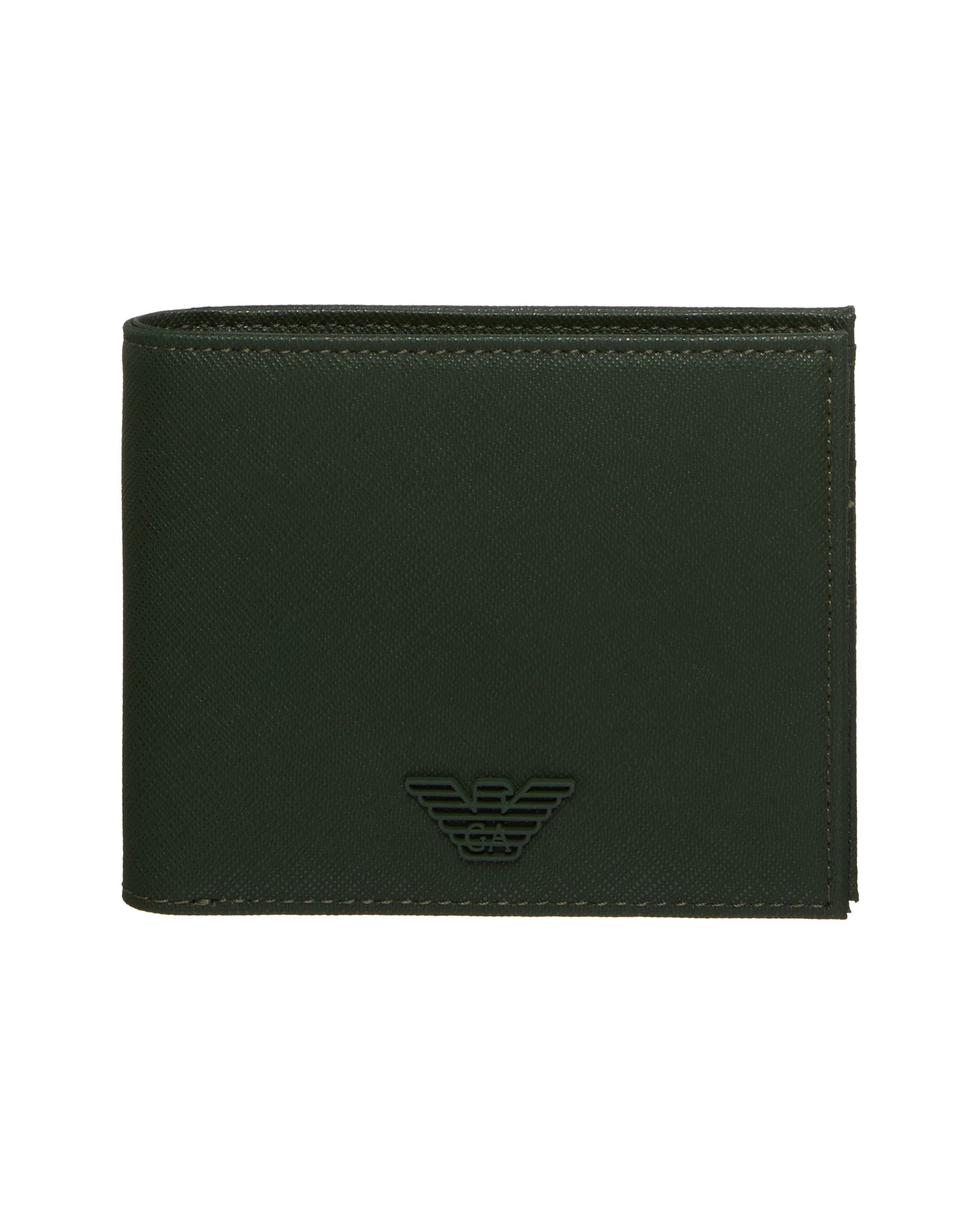 Bifold wallet with numerous interior pockets in regenerated leather with a Saffiano finish. A small leather goods selection introduced this season that combines a charming, minimalist design with fresh, vibrant new shades, featuring a Saffiano-print finish and customised with a matching-tone contoured, perforated and enamelled eagle logo.