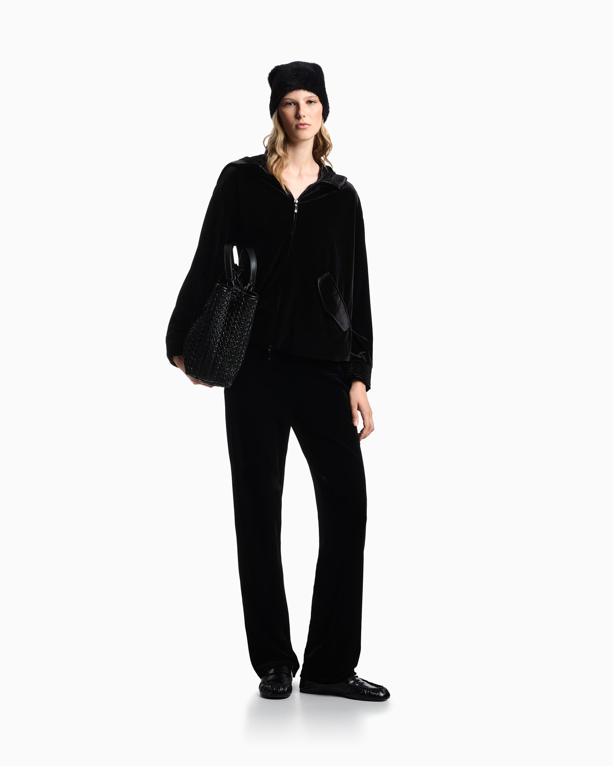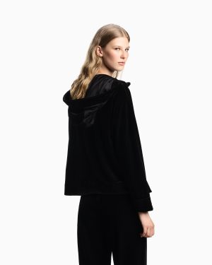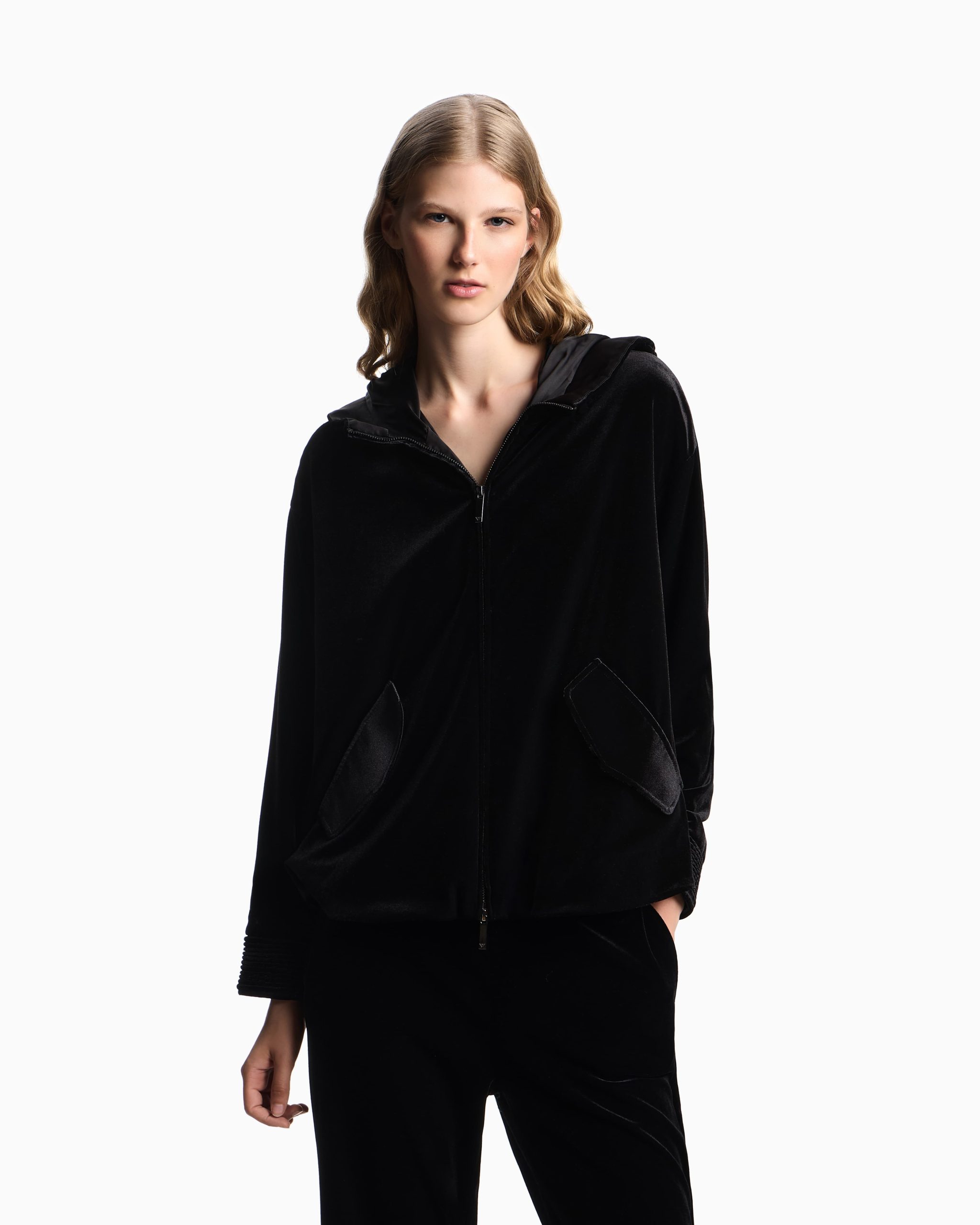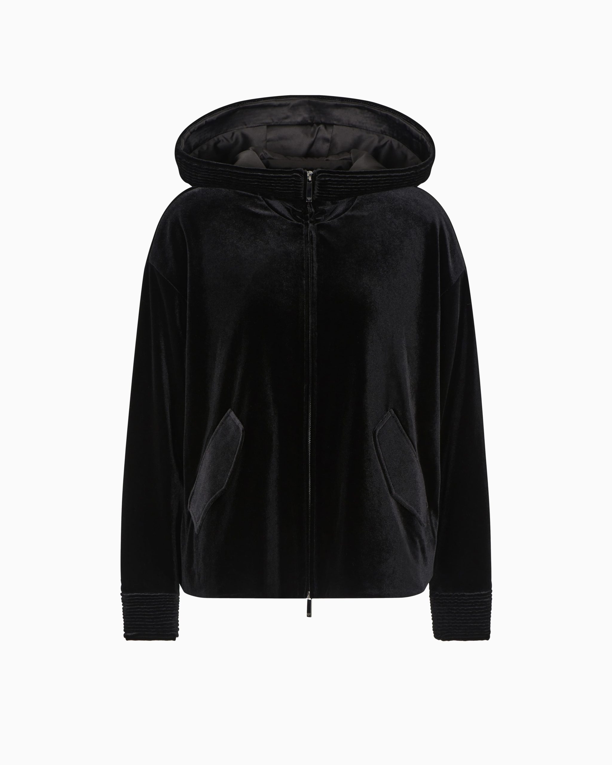 Hooded, zip-up sweatshirt made from cosy stretch chenille. The style has a satin lining and features ribbed edges on the sleeves and hood. A feminine and comfortable piece that is perfect for wearing on a wide array of occasions.