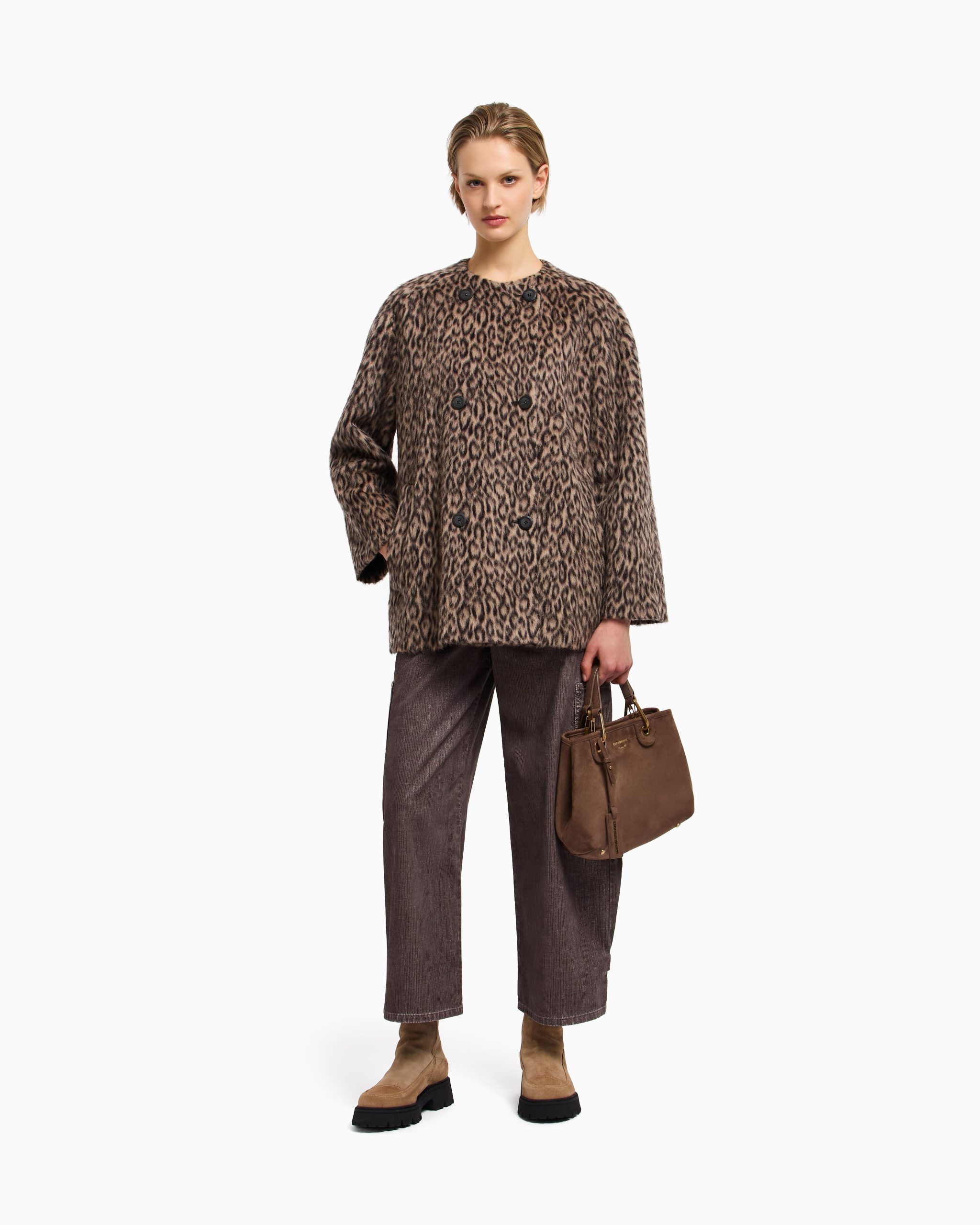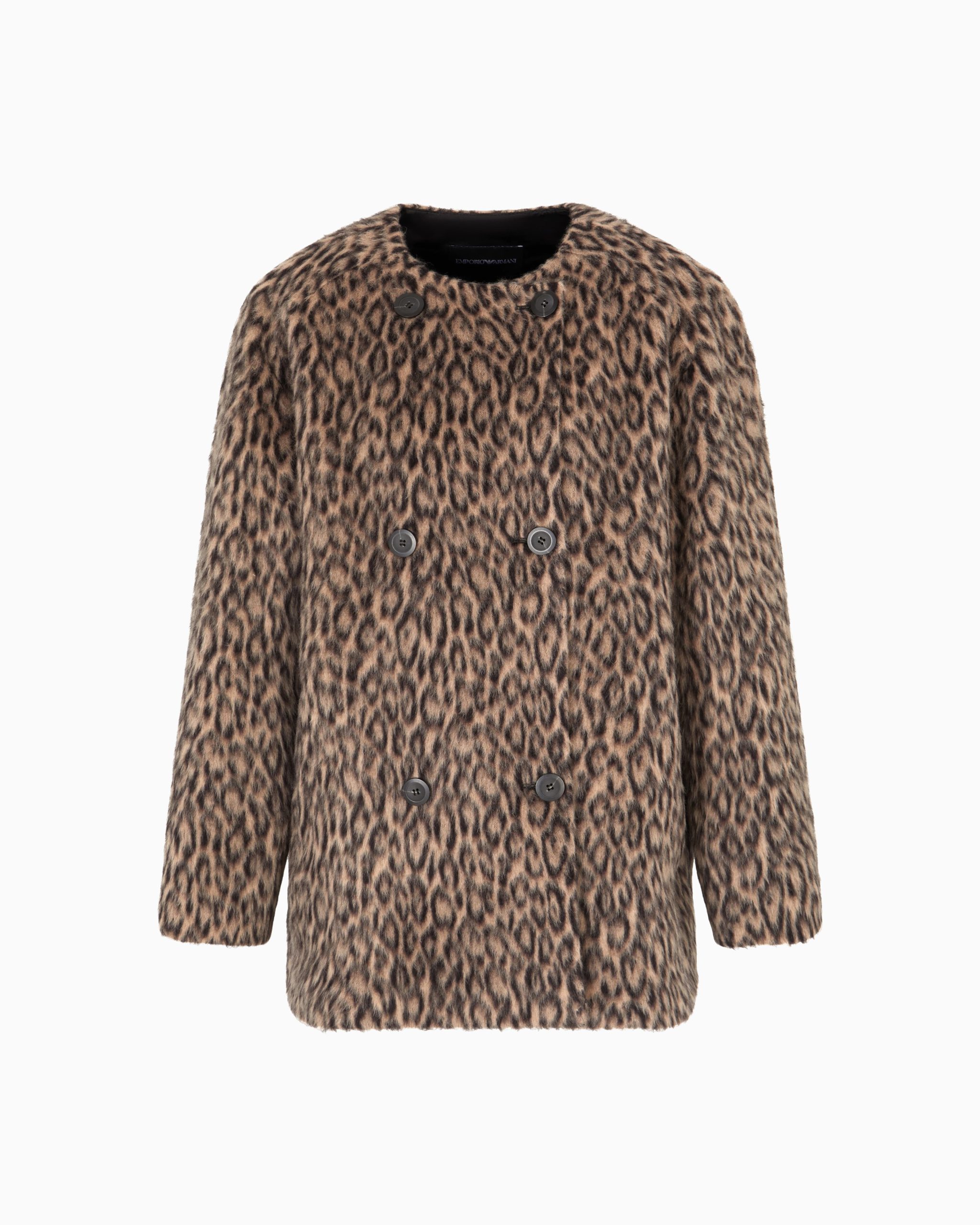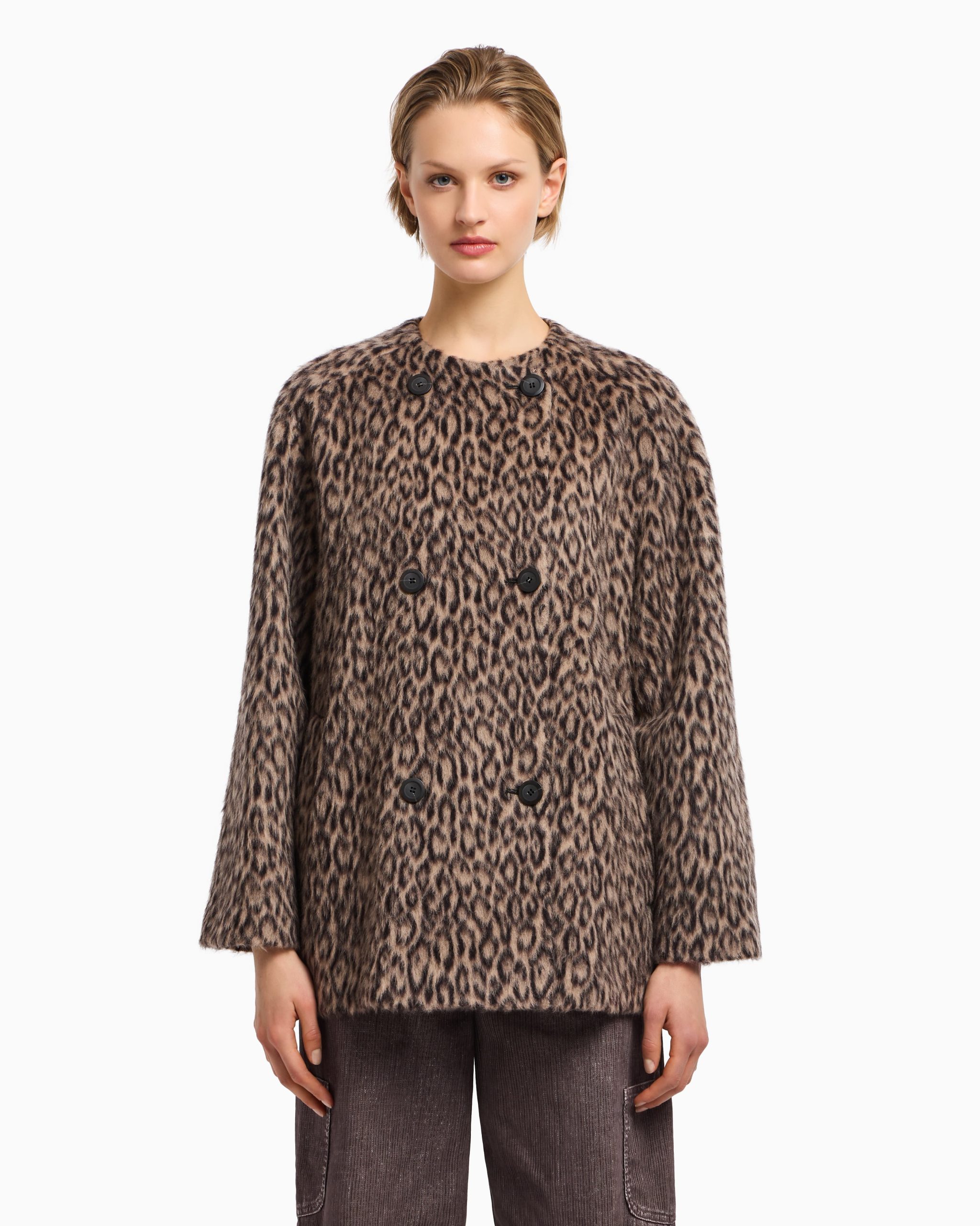 Double-breasted pea coat made from a wool and alpaca wool blend that gives the fabric a cosy fur effect. The design with a flap at the back has a sophisticated animal print that elevates the exclusiveness of the garment and lends itself to completing multiple outfits with an easy-chic feel.
