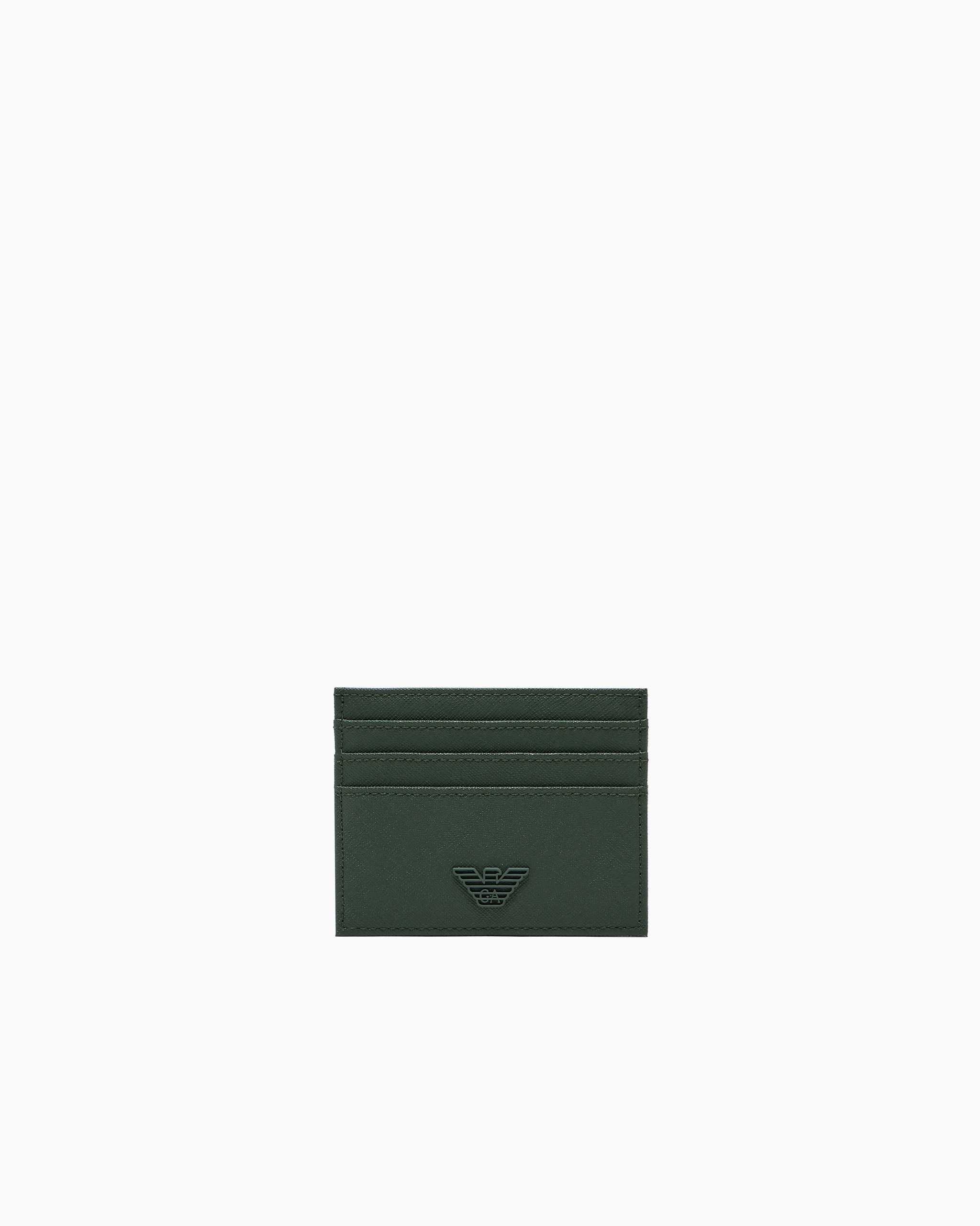 Regenerated leather card holder with a Saffiano finish. A small leather goods selection introduced this season that combines a charming, minimalist design with fresh, vibrant new shades, featuring a Saffiano-print finish and customised with a matching-tone contoured, perforated and enamelled eagle logo.