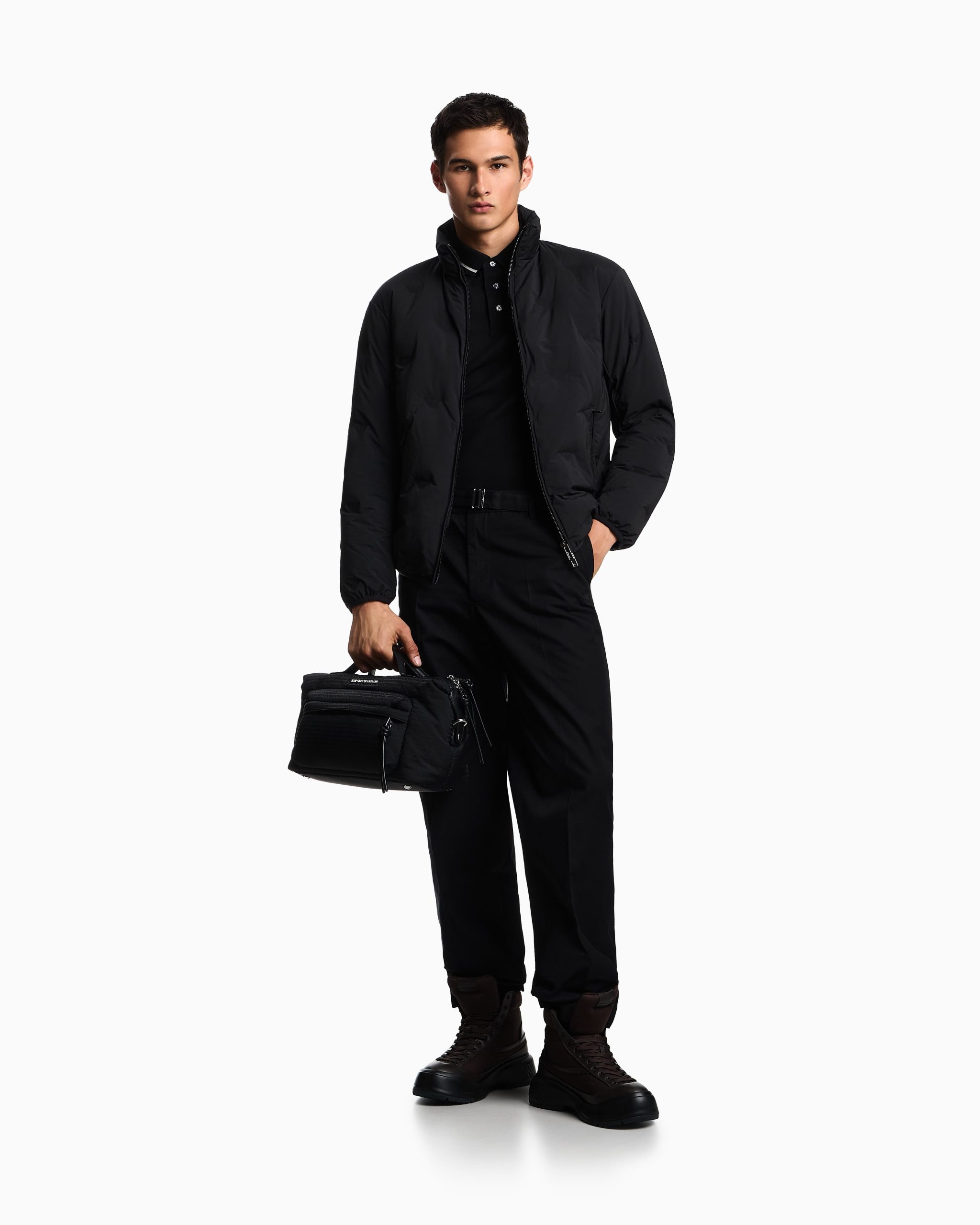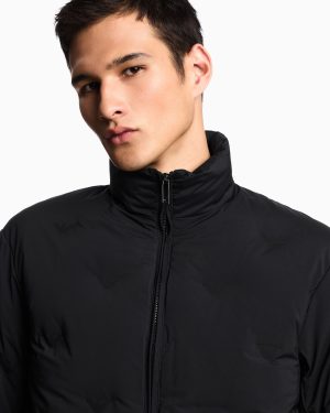 Full-zip nylon down jacket embellished with a unique inlay with matching micro eagles that create a slightly quilted effect. A fabric that uniquely combines the iconic eagle logo with stretch yarn for excellent performance and optimum resilience. The ideal coating for high-performance outerwear: bold, comfortable and functional.