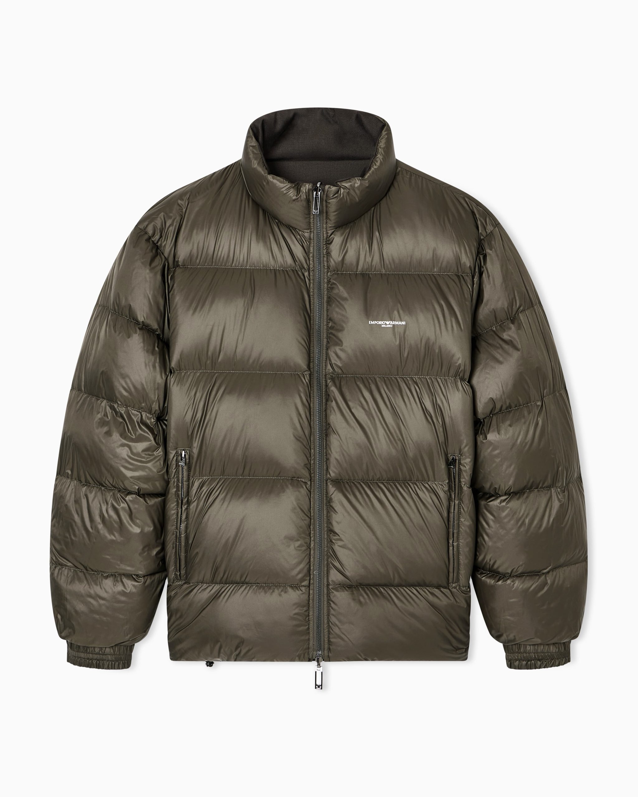 This down jacket is reversible: on one side the sophisticated taste of wool-blend twill fabric, a texture featuring a characteristic diagonal weave, on the other side the casual appeal of nylon with horizontal quilting that enhances the cosy feel of the genuine down padding. The perfect combination of practicality and style, where functionality and trend come together to give a touch of fashion to your idea of comfort.