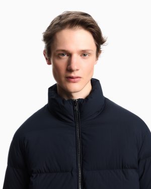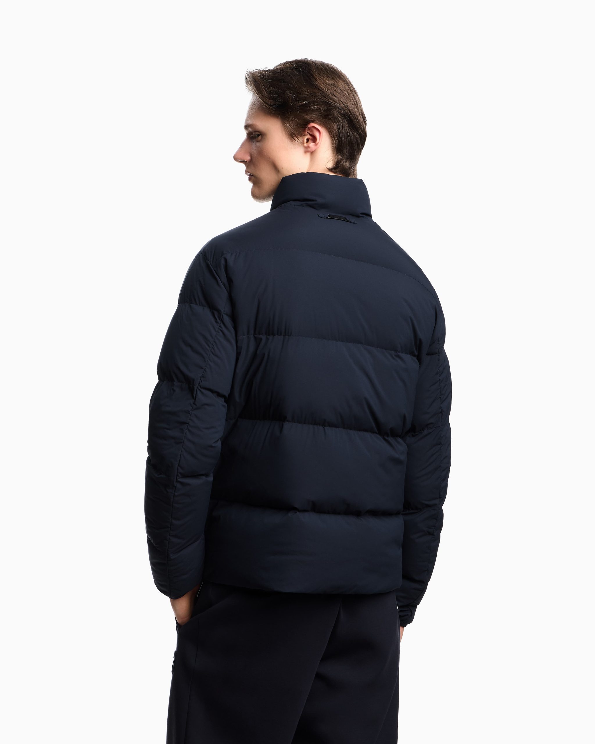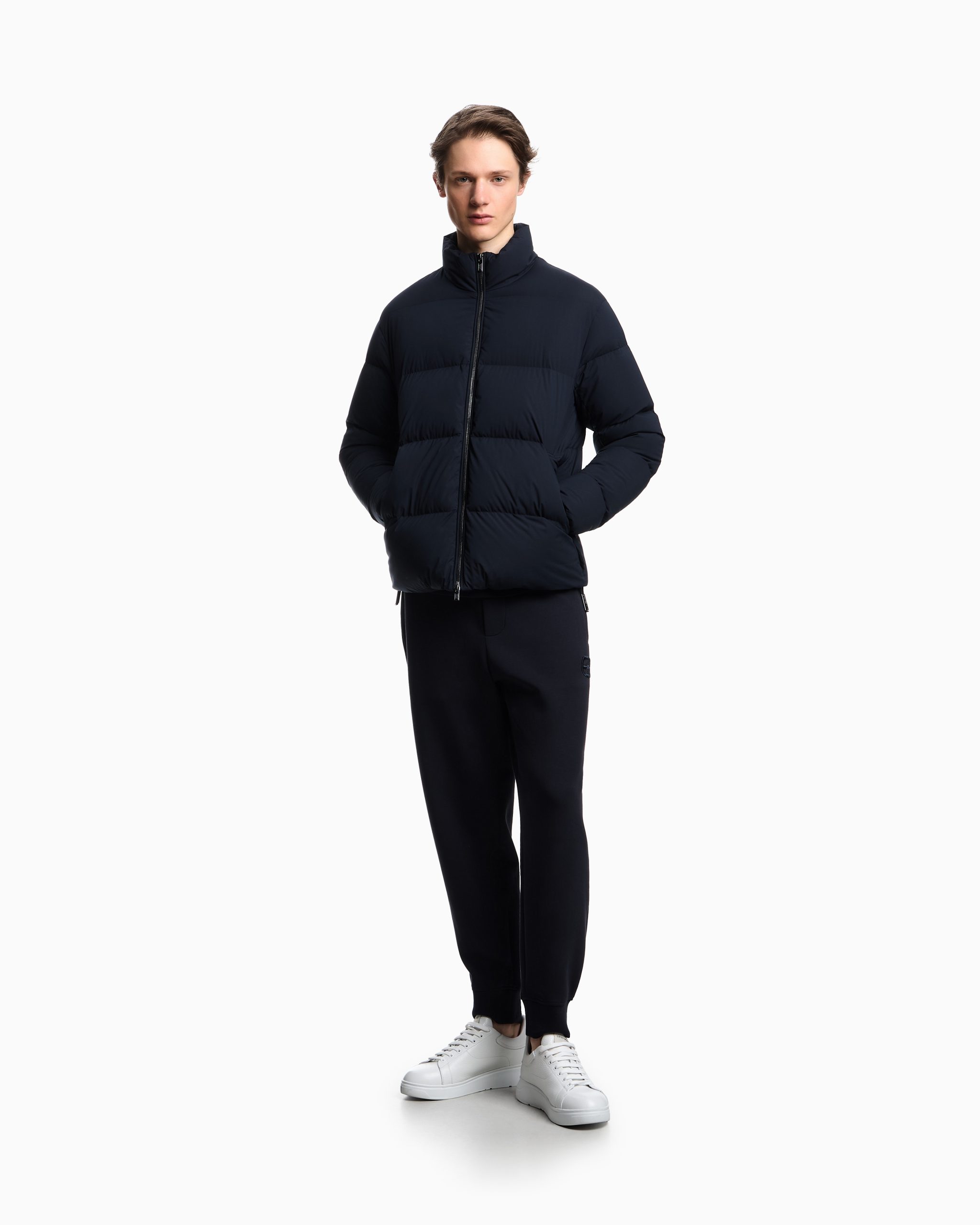 Full-zip down jacket in quilted nylon, the functionality and modern style of which are enhanced by the genuine down filling. A perfect daywear garment to wear in winter. This item belongs to the Essentials clothing selection, the Emporio Armani capsule collection that is an evergreen statement of a style: an ongoing collection with clean, well-designed shapes for a wardrobe that meets the demands of any season. These “essential”, versatile pieces are a must-have for the male wardrobe.