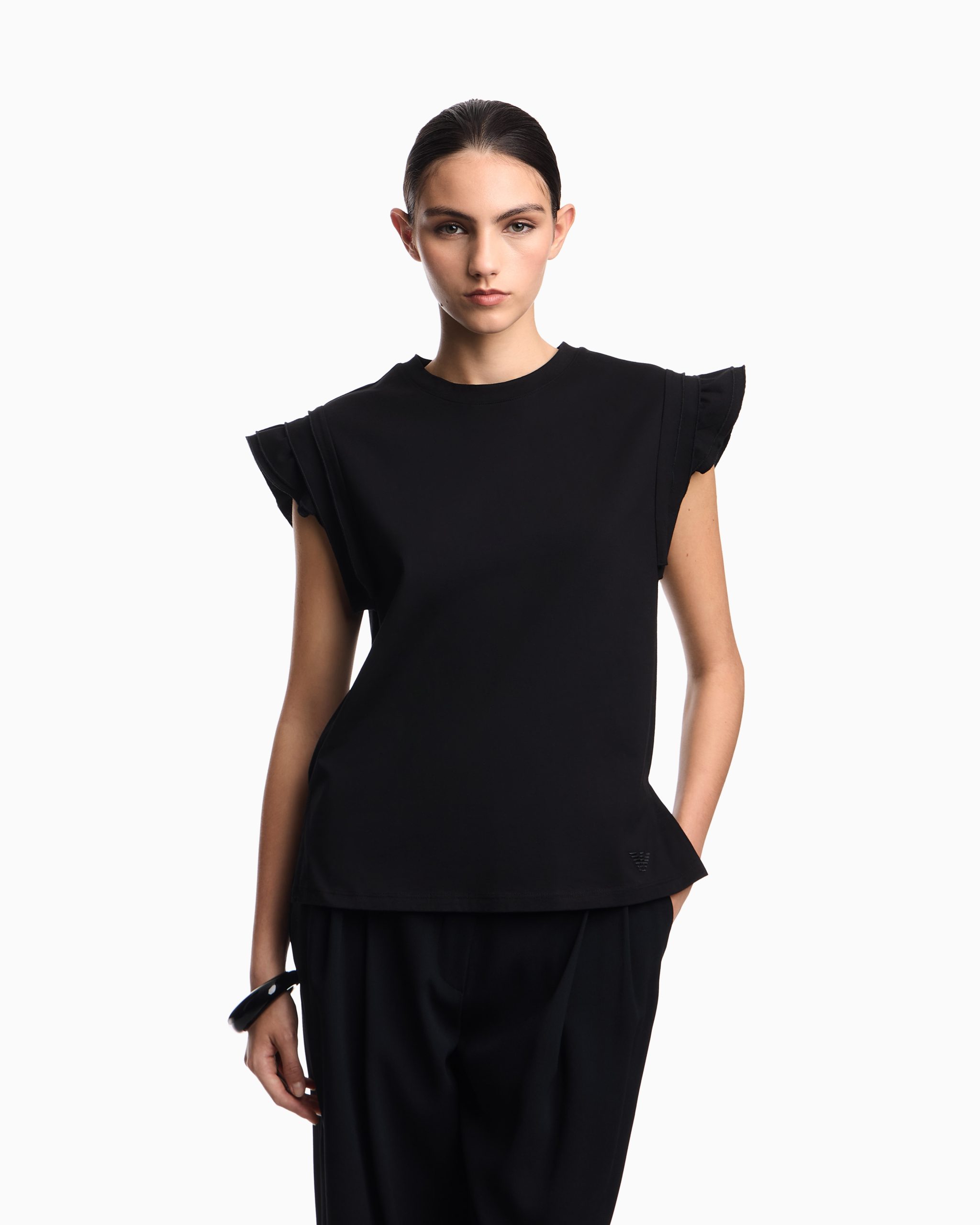 ASV jersey T-shirt with ruffles on the sleeves