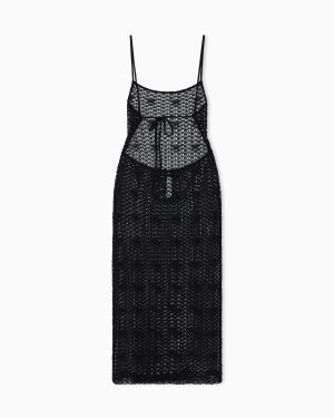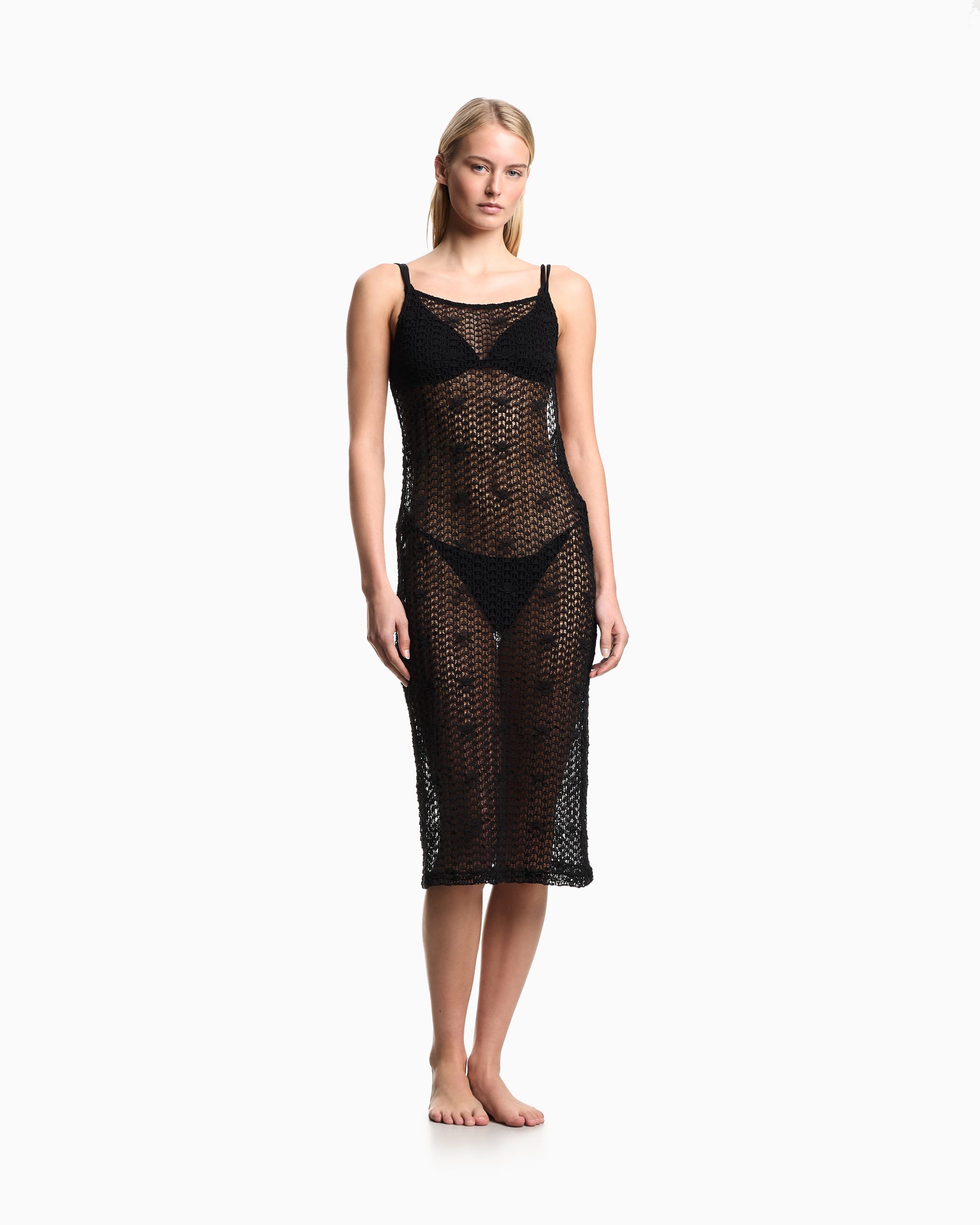 Floral pattern beachwear midi dress in macramé lace
