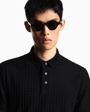 Pure cotton-jersey polo shirt featuring an all-over jacquard pattern that creates an original motif that adds prestige and personality to the style. This refined style can be worn anywhere and with anything.