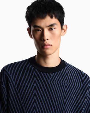 Crew-neck jumper made of a virgin-wool blend, featuring a refined jacquard with an op-art motif that creates a succession of intersecting oversized diamonds.