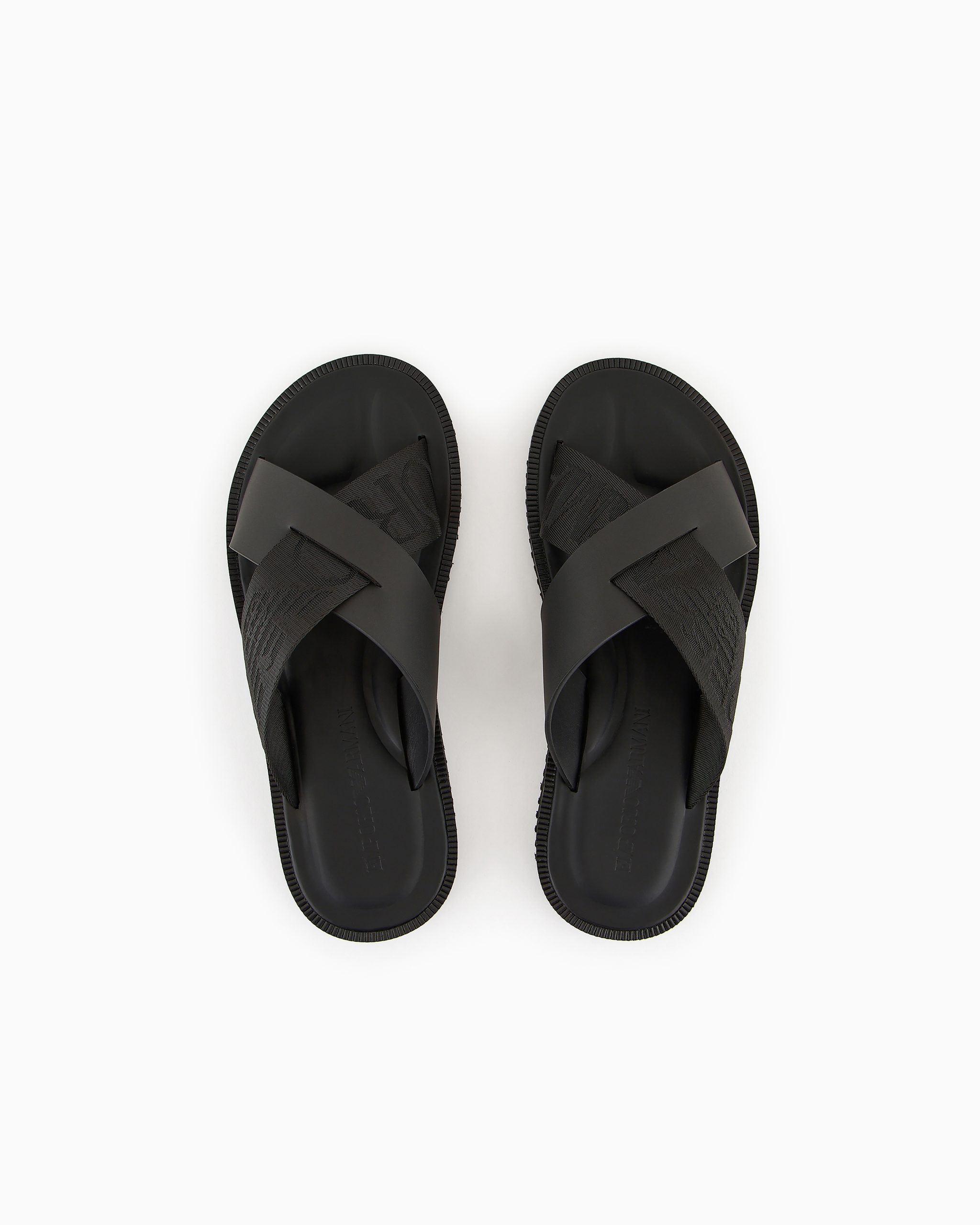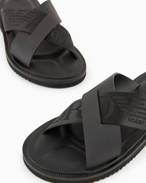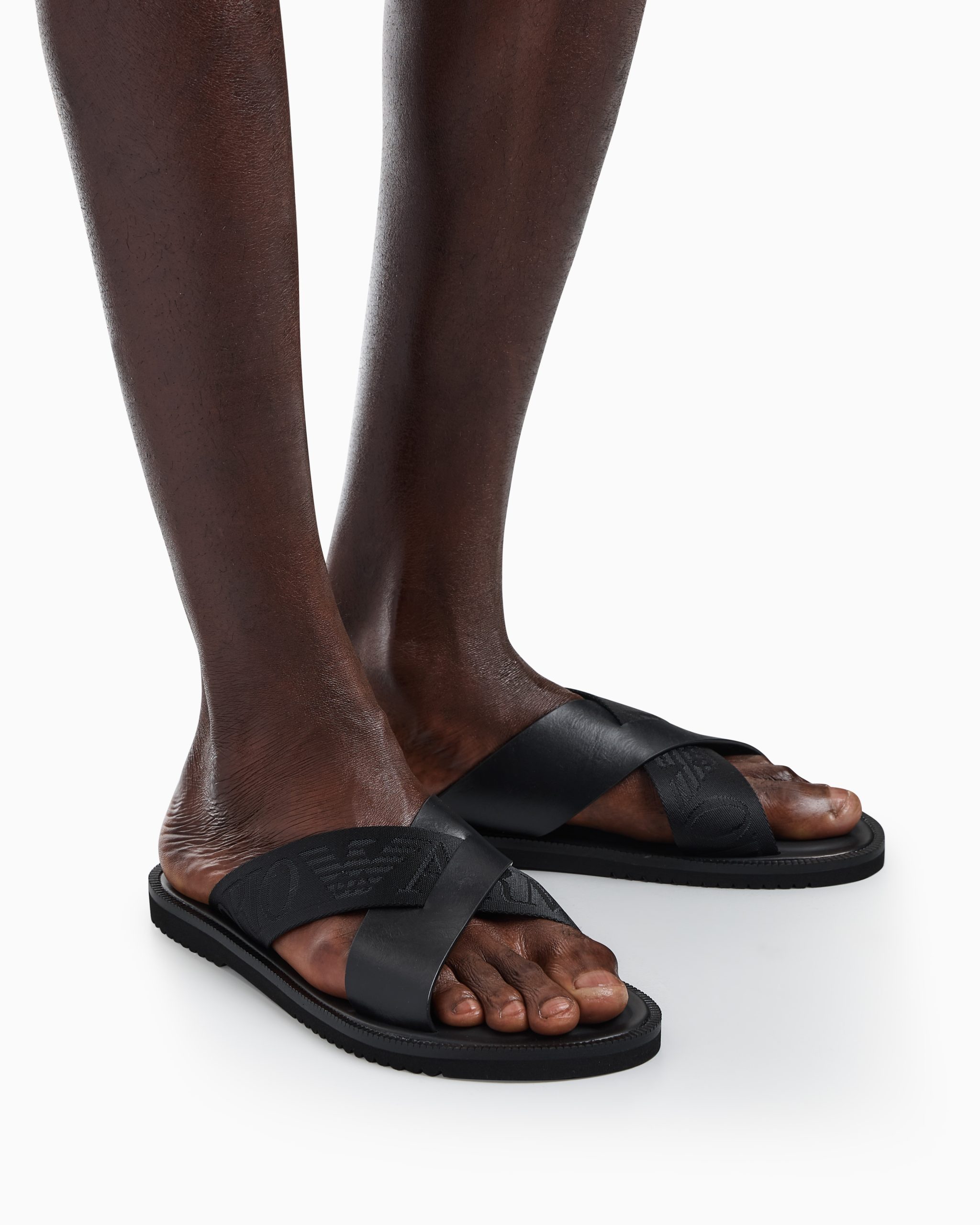 Leather cross-over sandals with logo tape