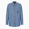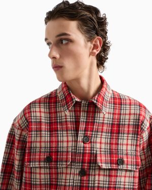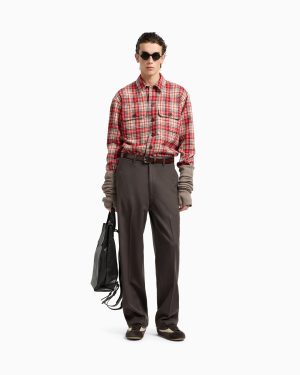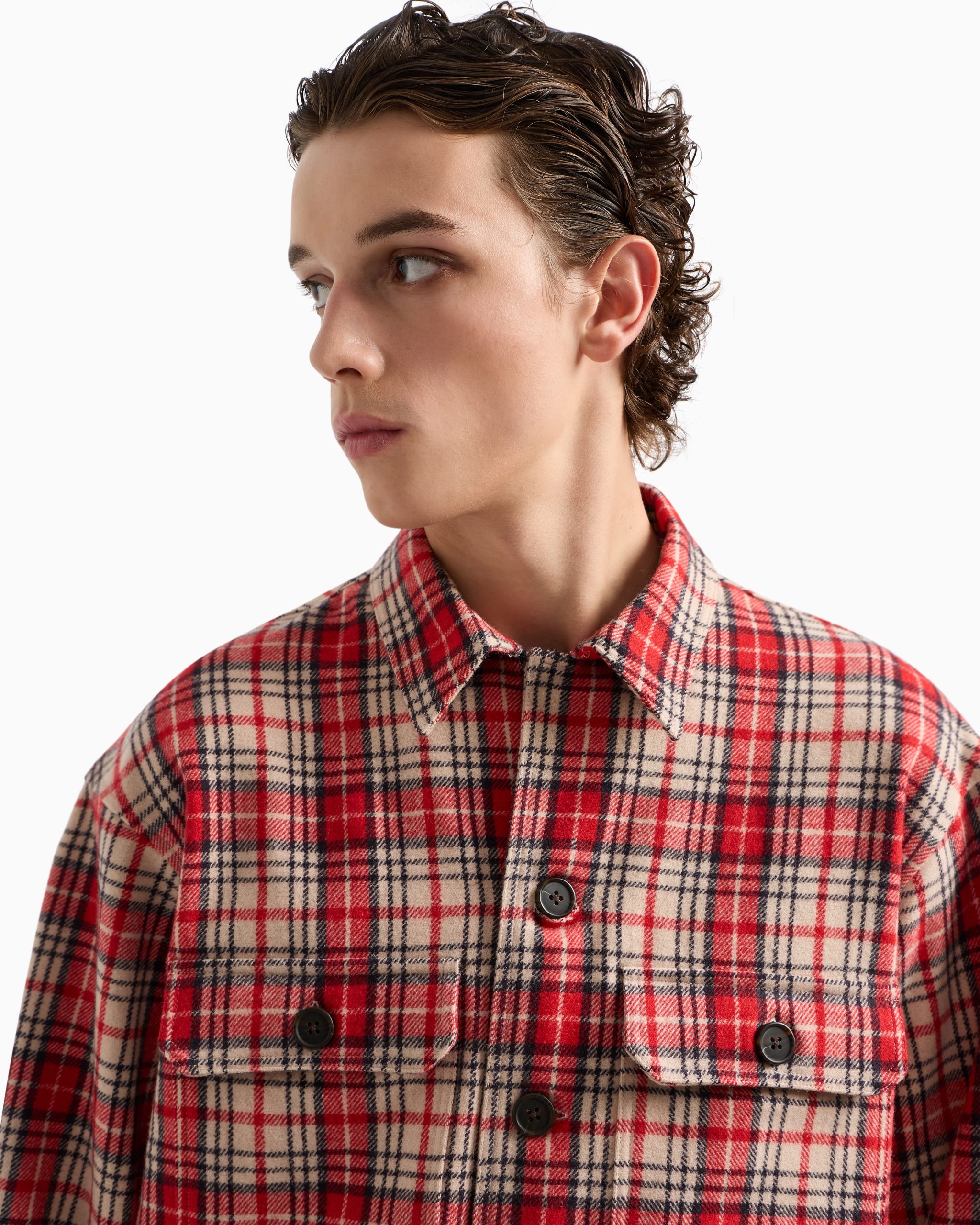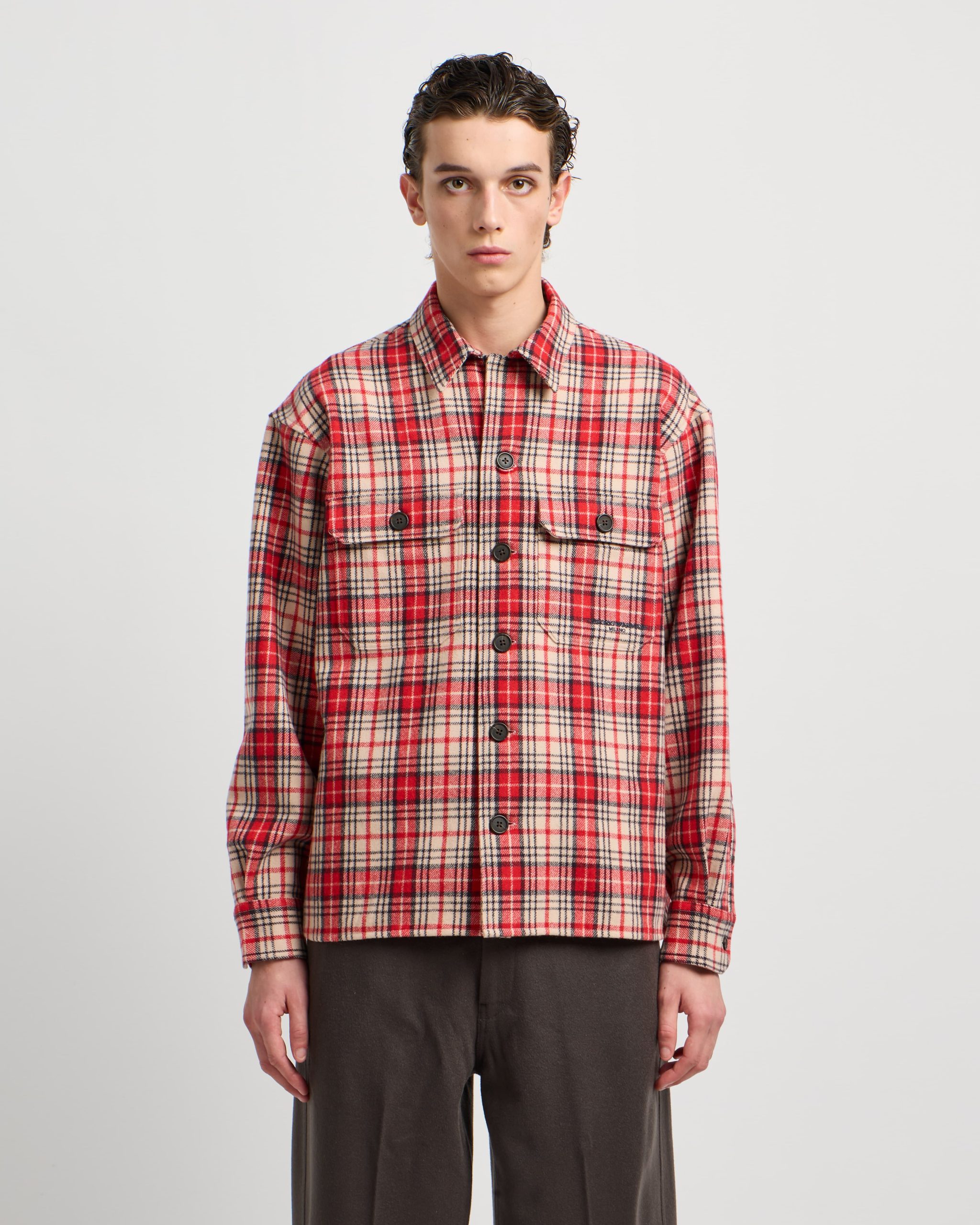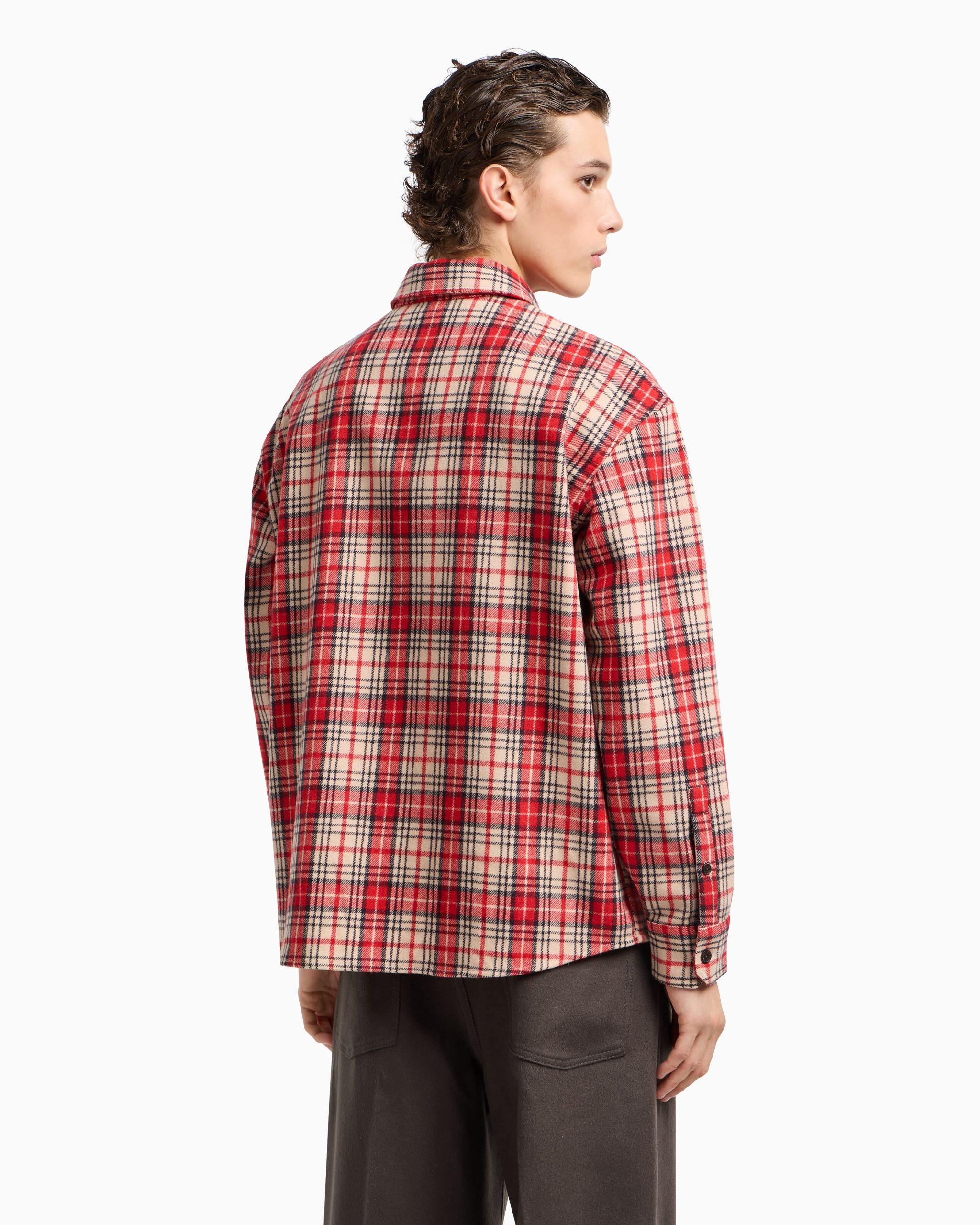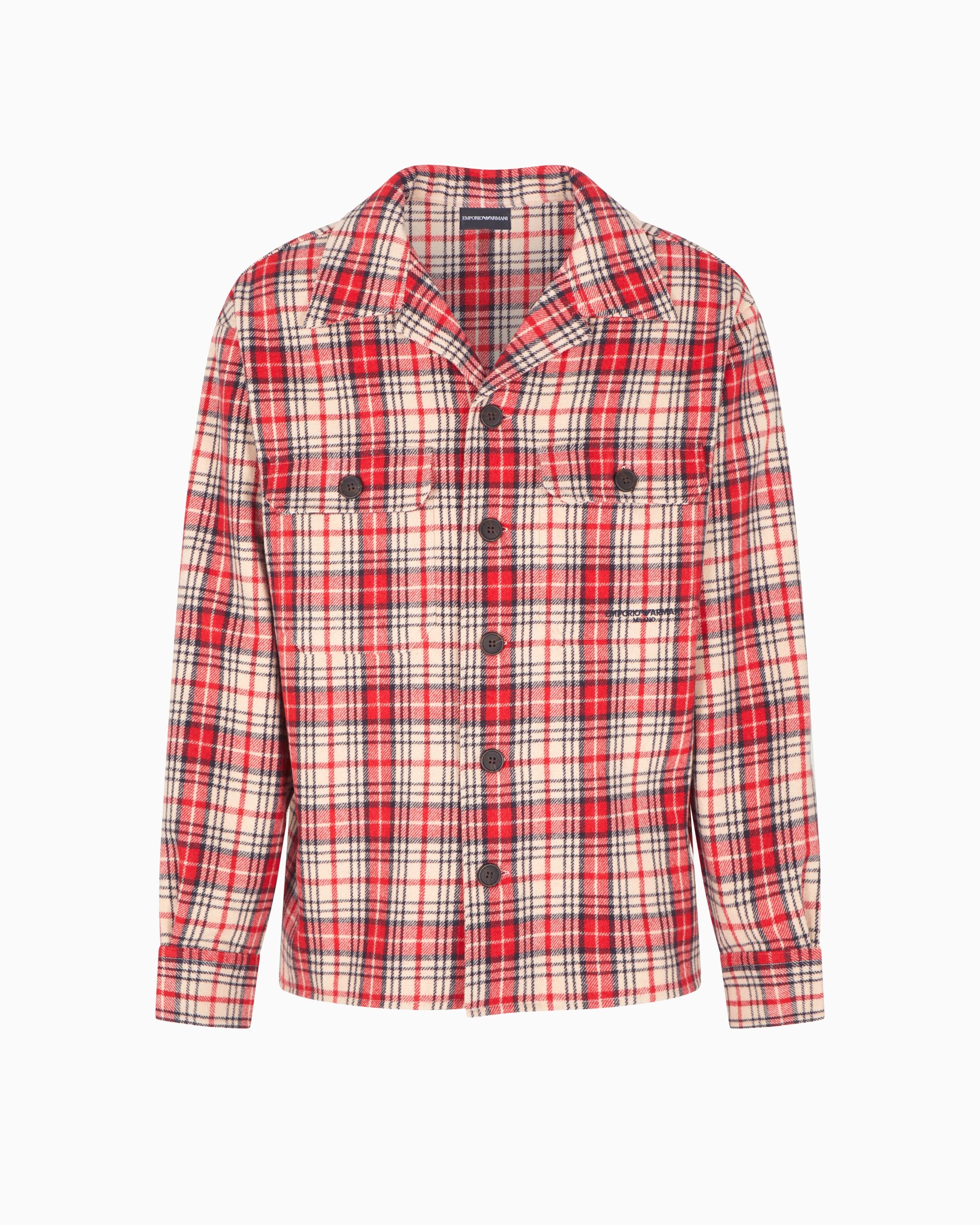 Classic collar shirt in an oversized fit featuring patch pockets with a flap and button. The piece is made of a dense and particularly heavy virgin-wool flannel. The tartan motif on the fabric adds a wintery allure and a casual feel to the style.