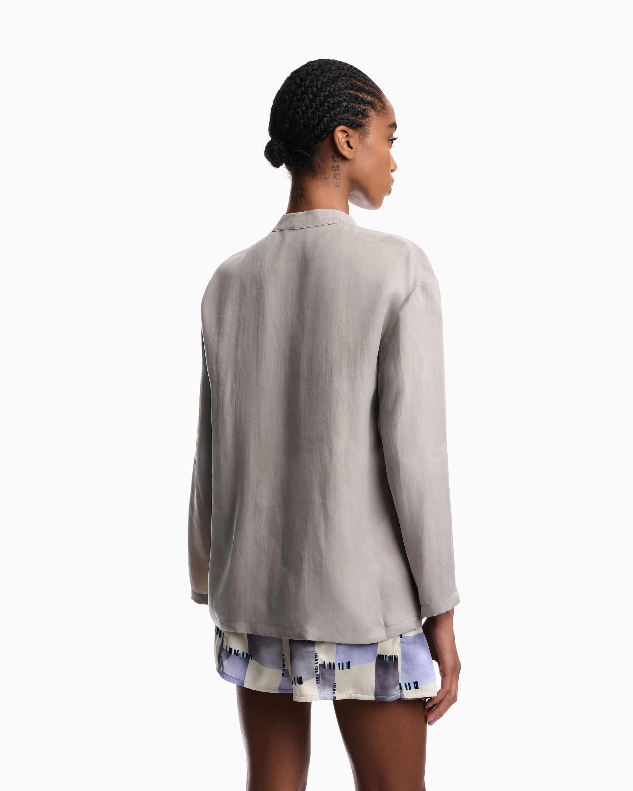 Flowing washed Lyocell shirt with guru collar