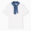Bandana print chambray blouse