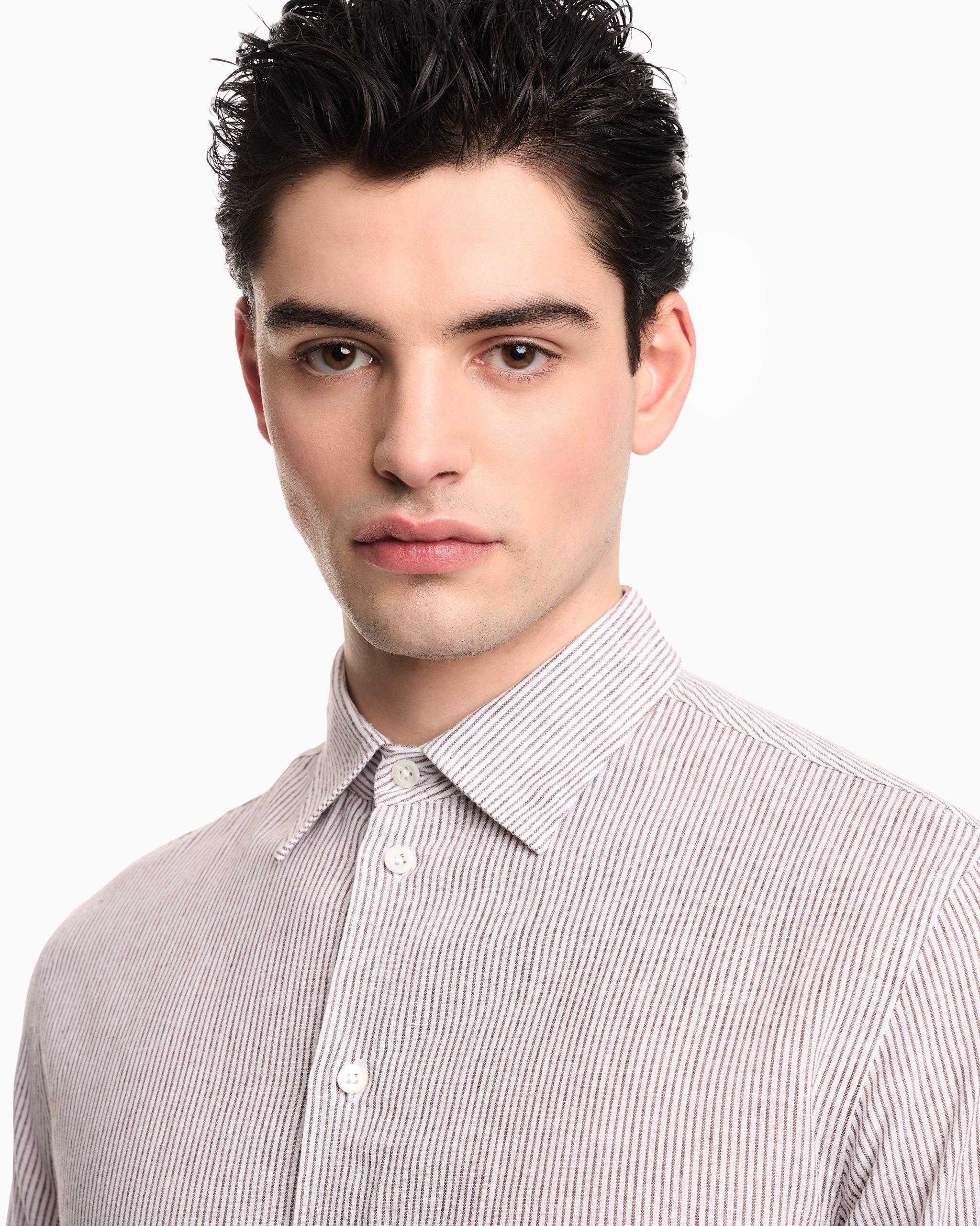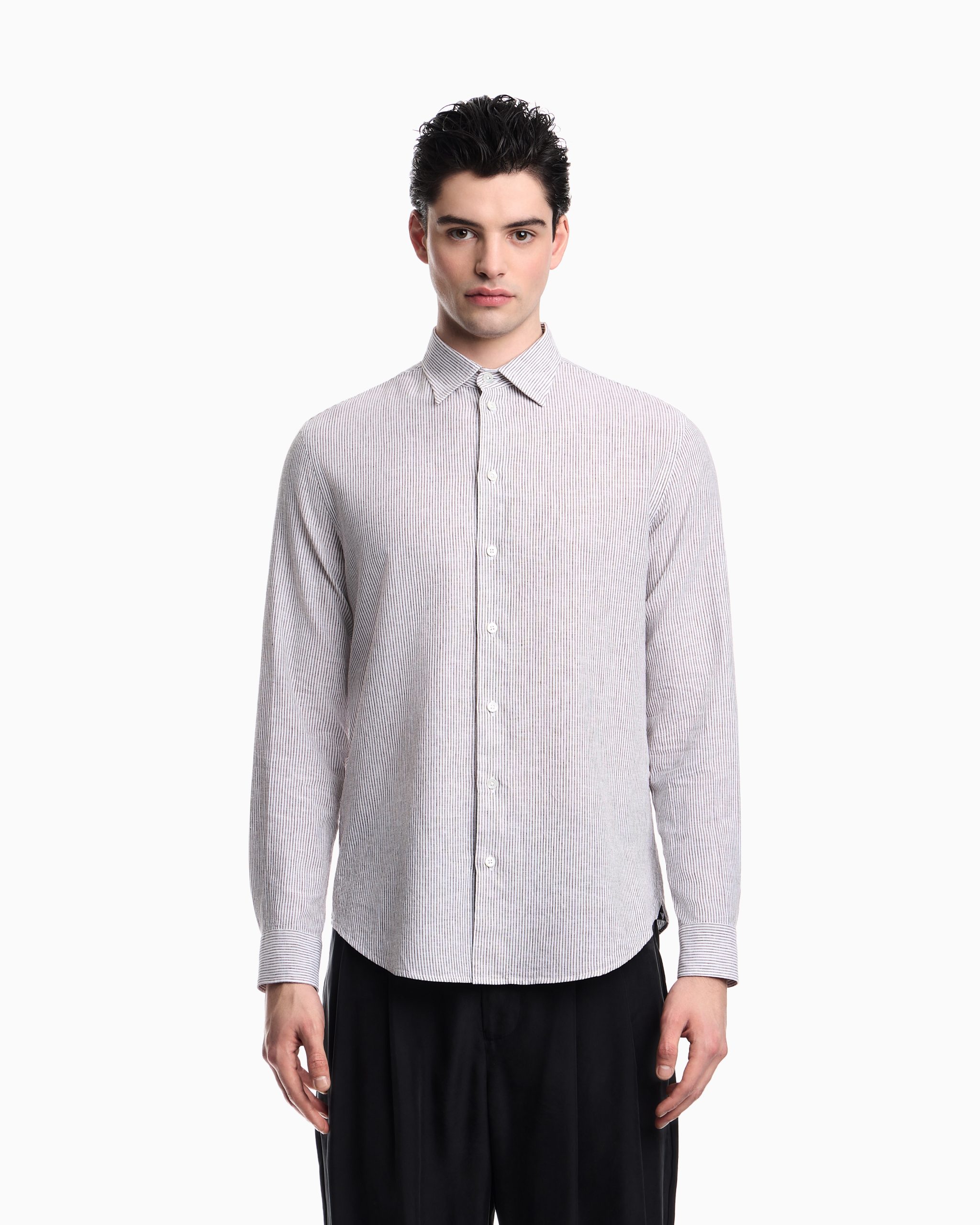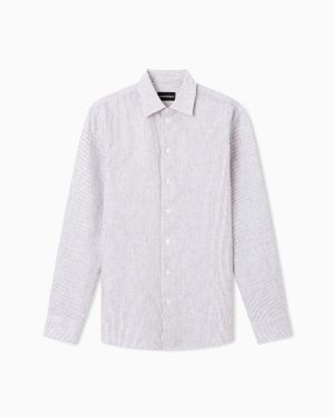 Striped linen-blend canvas shirt