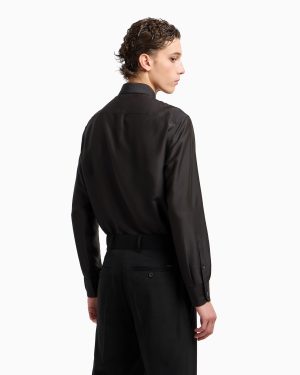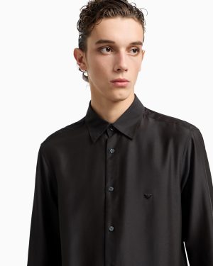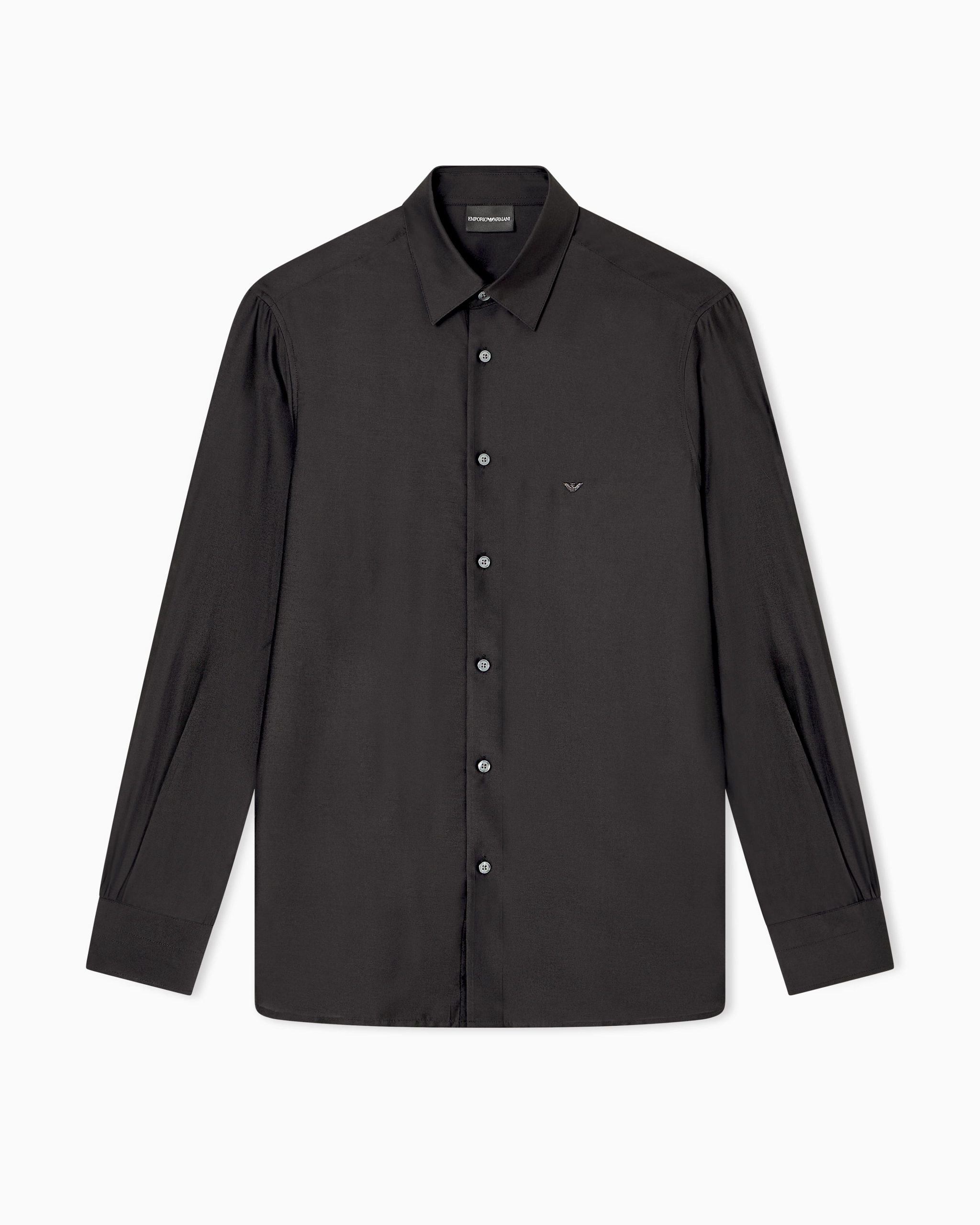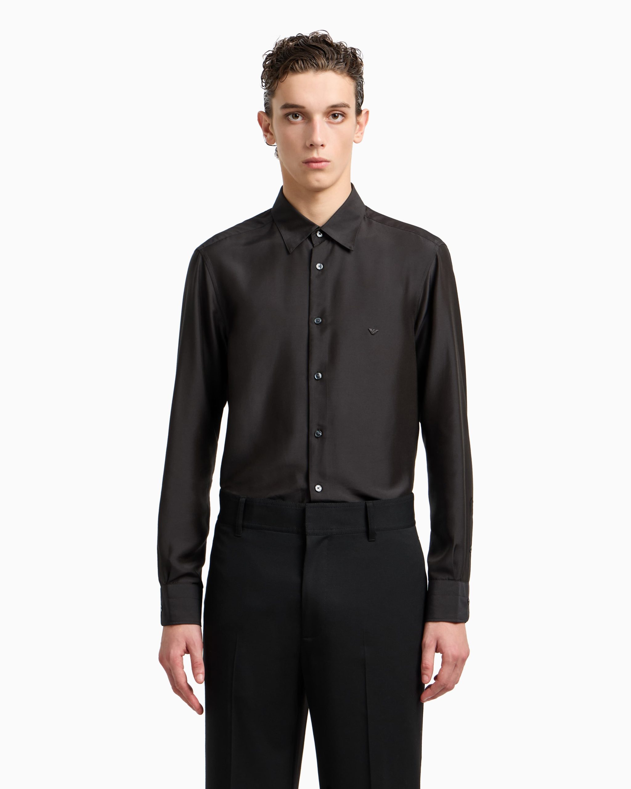 Shirt with a classic collar and front buttoning. Made from a super soft modal silk blend that adds a shiny touch to the piece. A matching-tone super-embossed, embroidered iconic eagle on the chest adds distinction to the style.