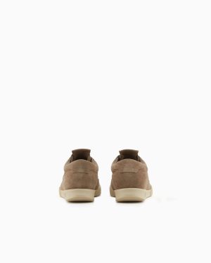 Sneakers made of suede, an iconic style with a rubber sole, featuring the Emporio Armani logo on the side.