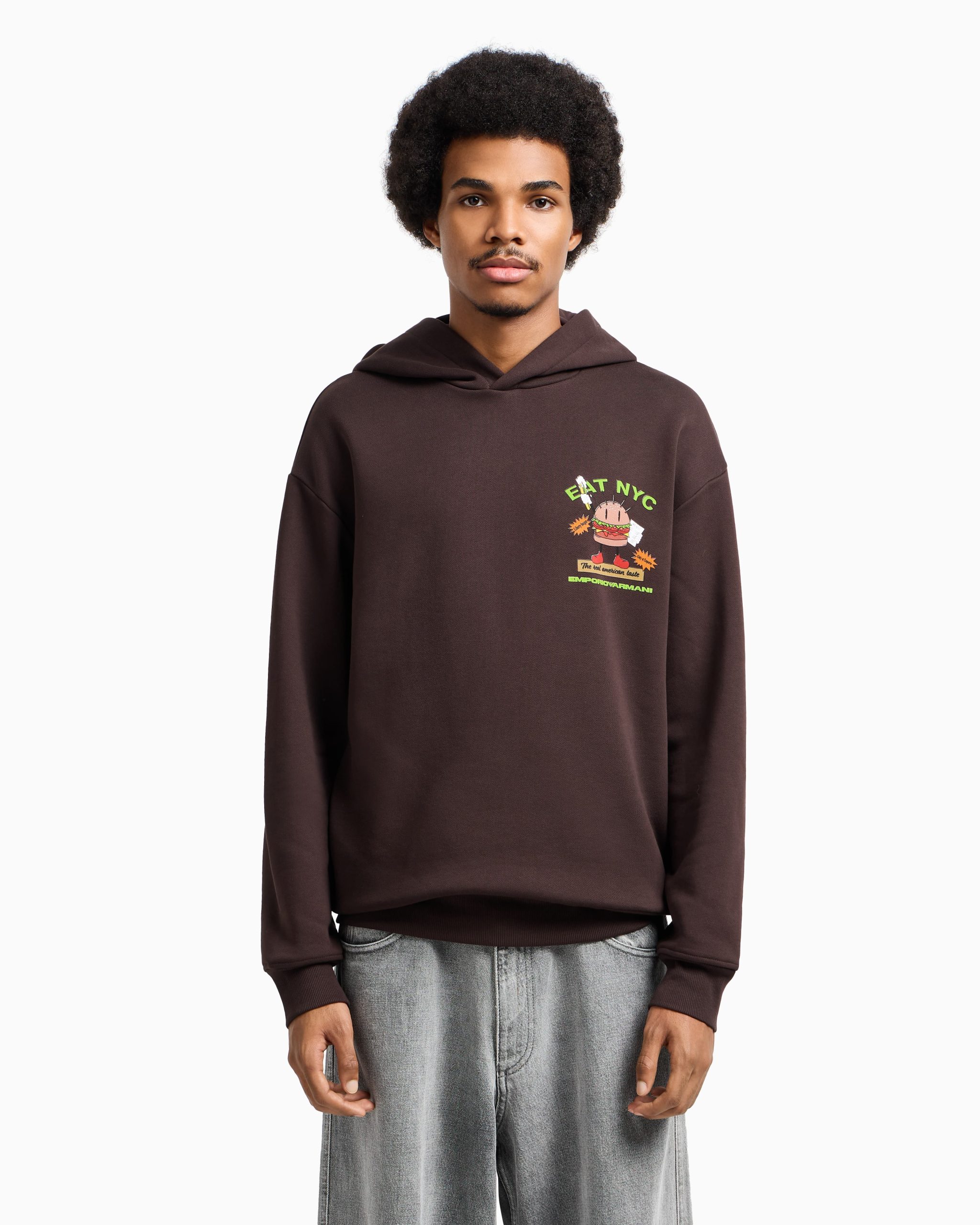Hooded sweatshirt in cotton jersey. The colourful oversized print on the back is also echoed on the chest for a fun, playful touch. Imagine walking the hectic streets of New York, where every corner tells a story, every street has its own pace. The New York AW25 collection is inspired by this unique energy, intertwining the dynamism of the metropolis with comfort and modern street style.