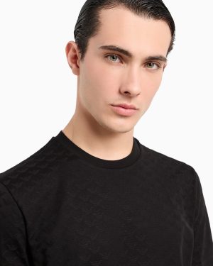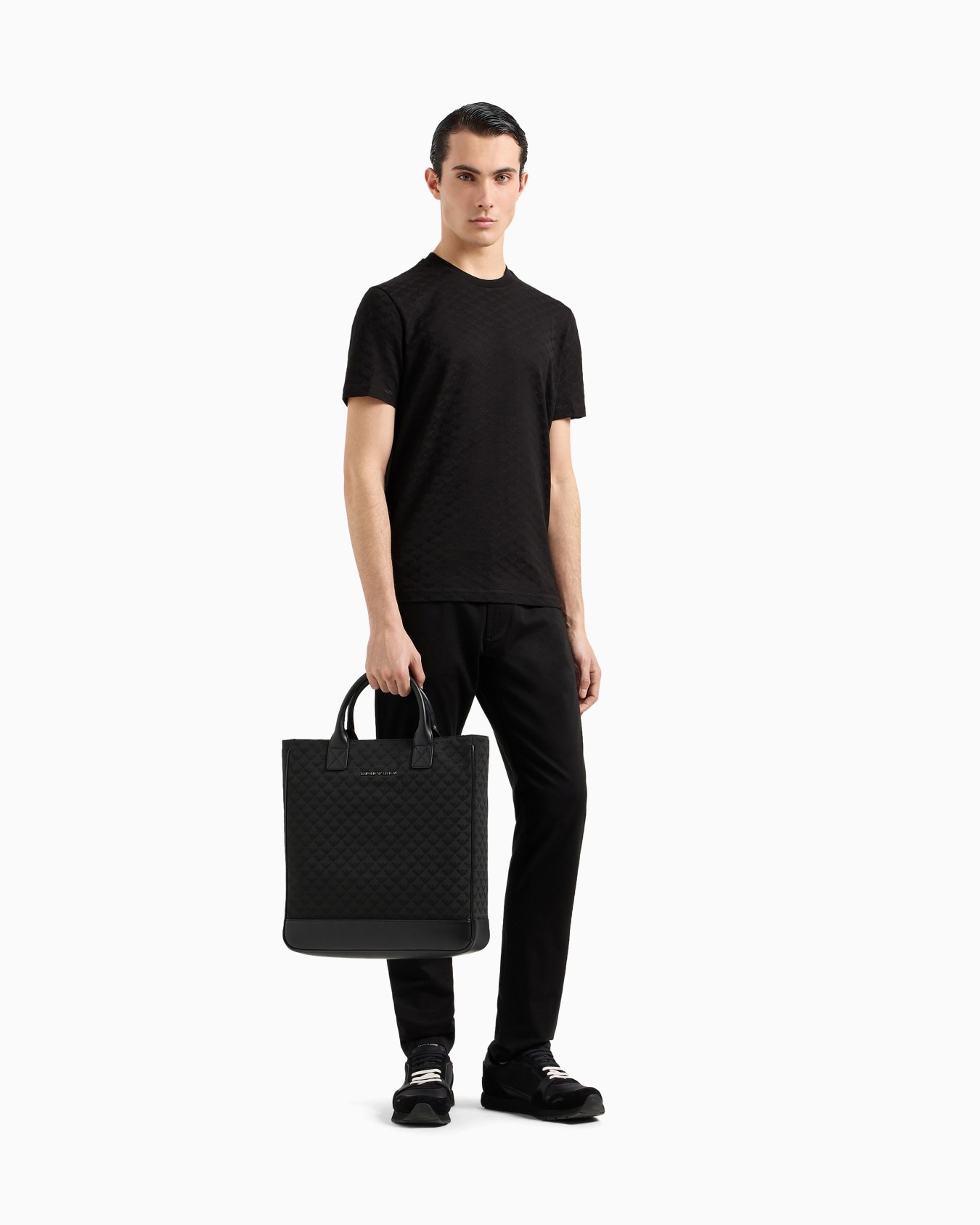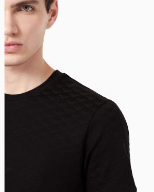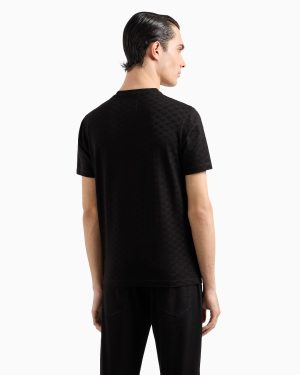 Mercerised-jersey T-shirt with all-over jacquard eagle