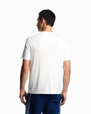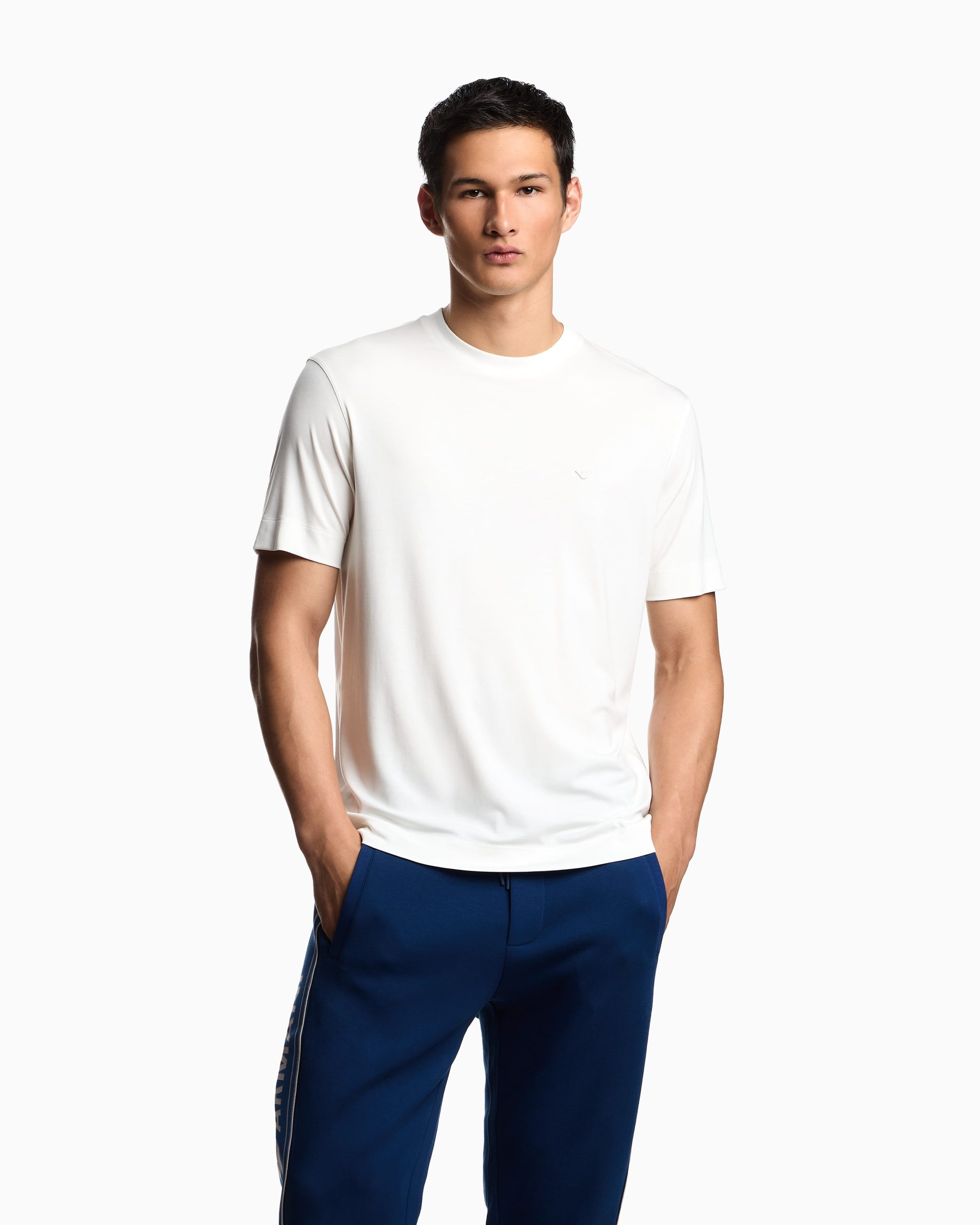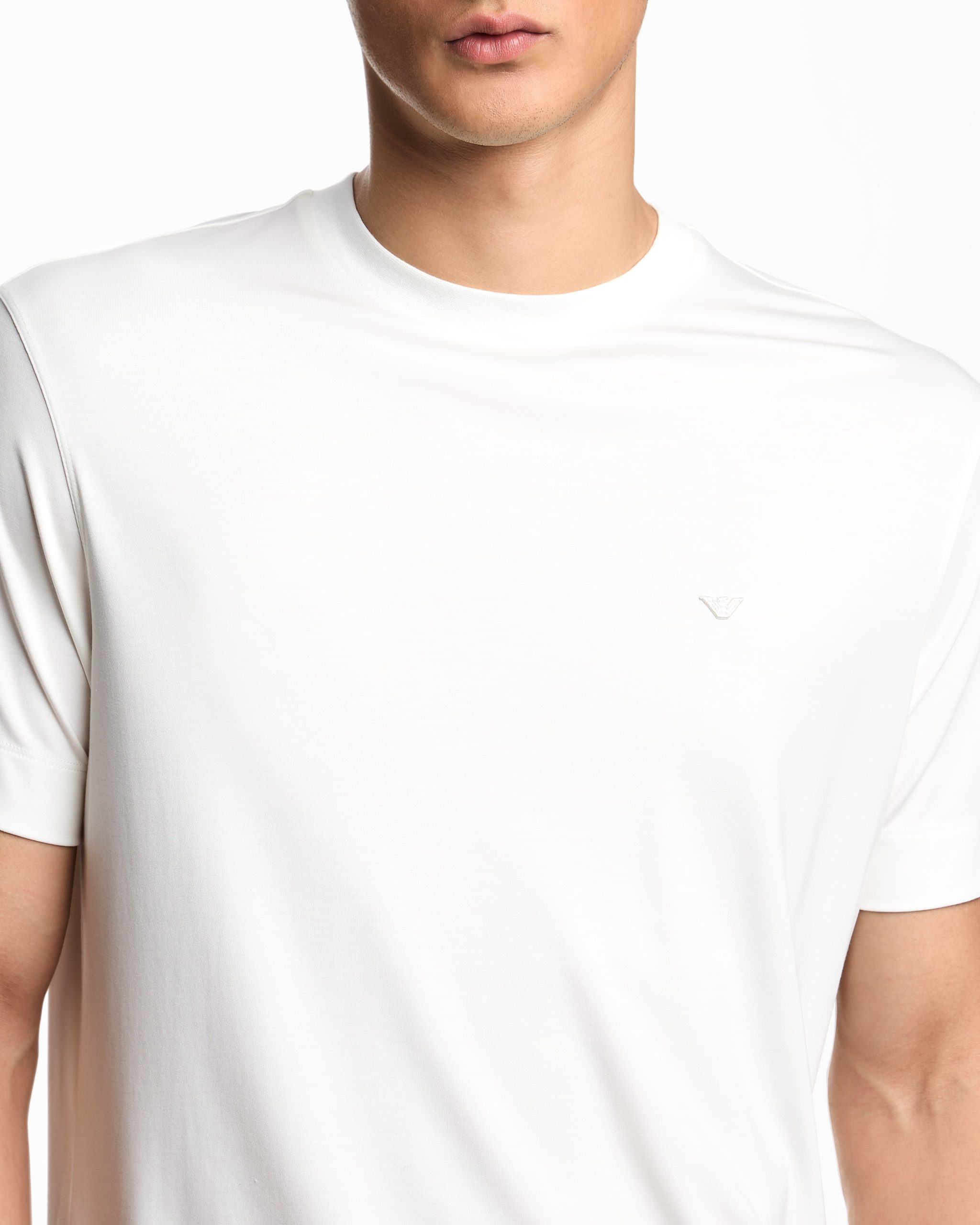 Crew-neck T-shirt with matching-tone micro eagle embroidery on the chest. Made from modal jersey, an exceptionally fluid and draping fabric with a particularly lightweight and smooth texture.