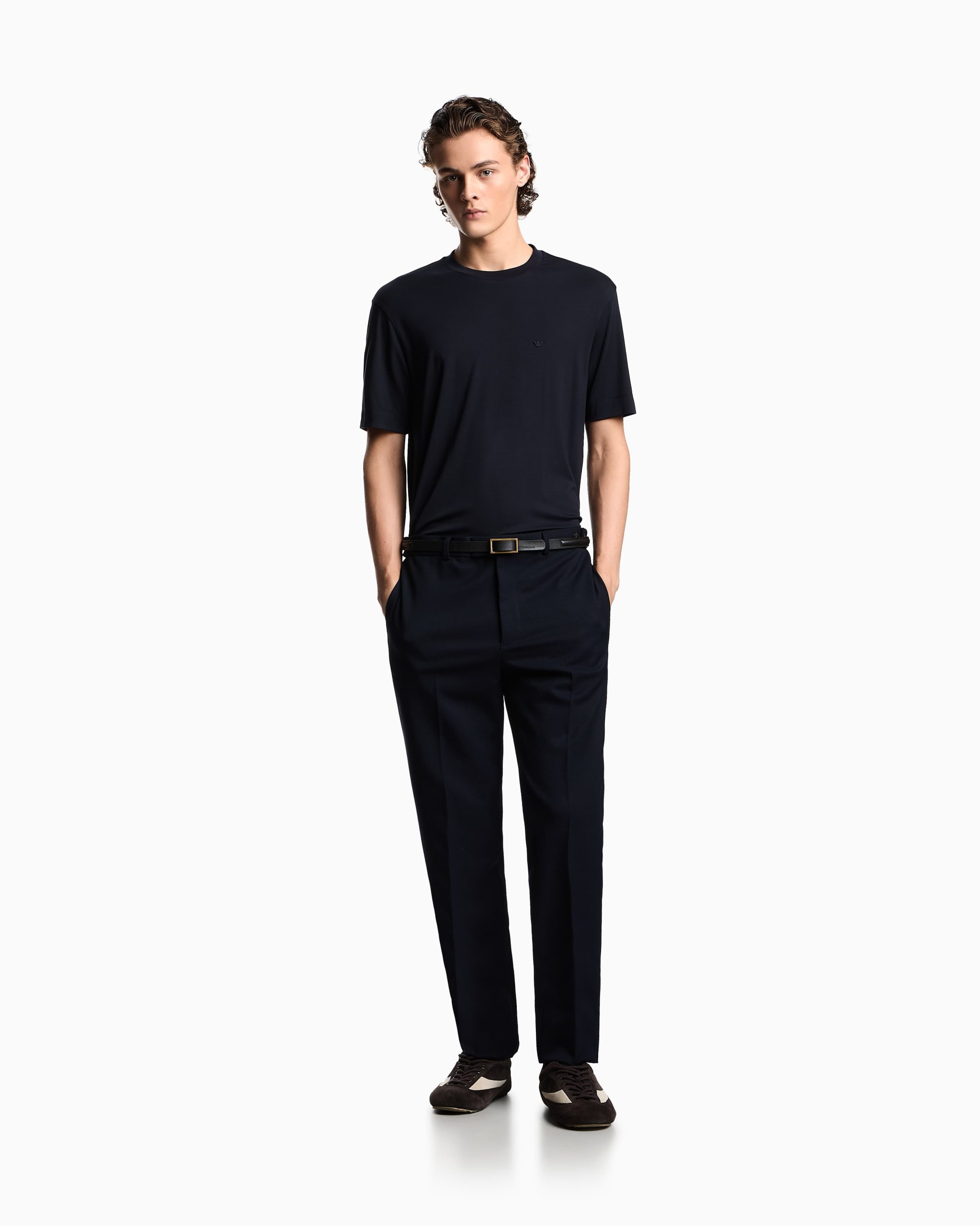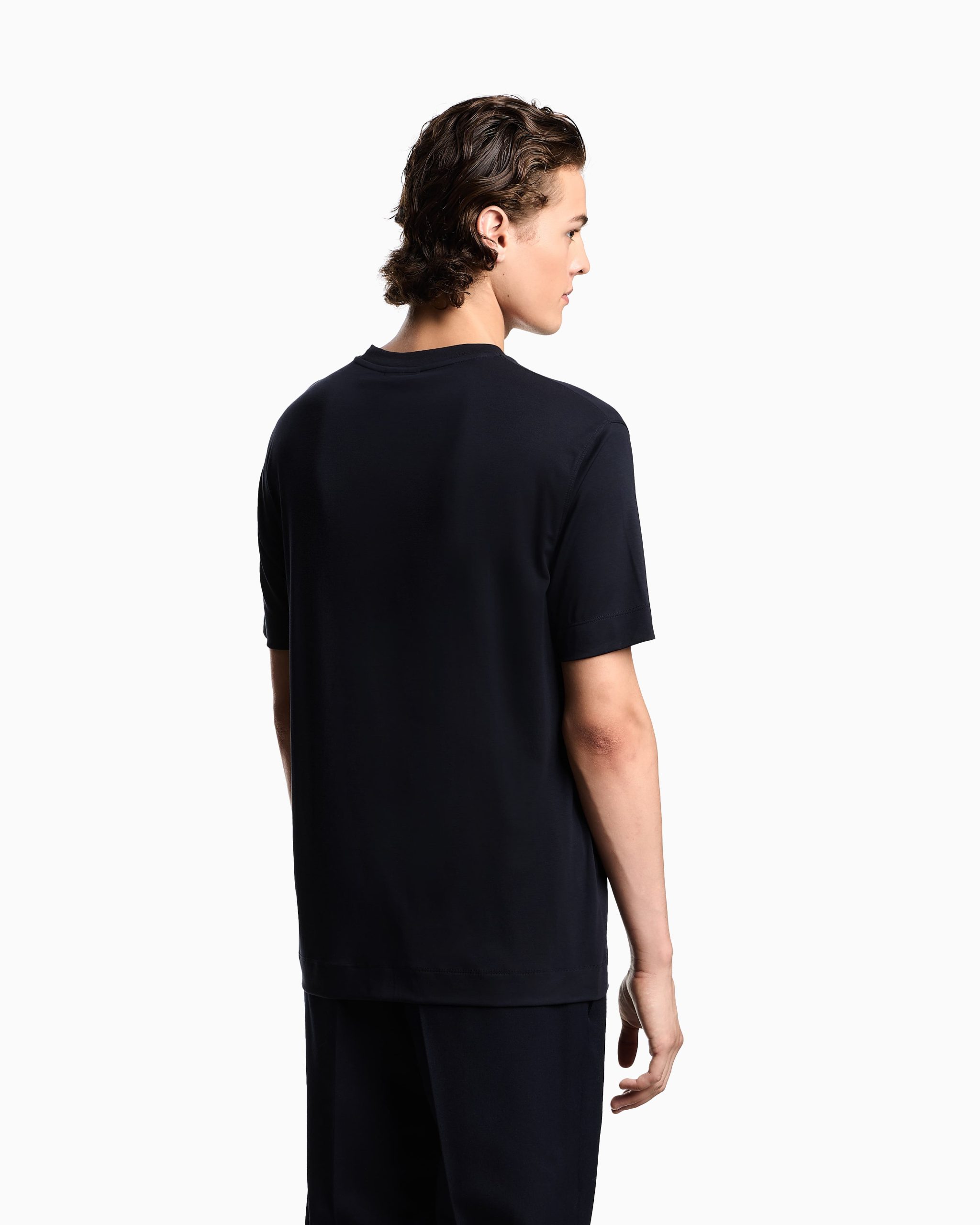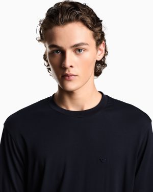 Crew-neck T-shirt with matching-tone micro eagle embroidery on the chest. Made from modal jersey, an exceptionally fluid and draping fabric with a particularly lightweight and smooth texture.
