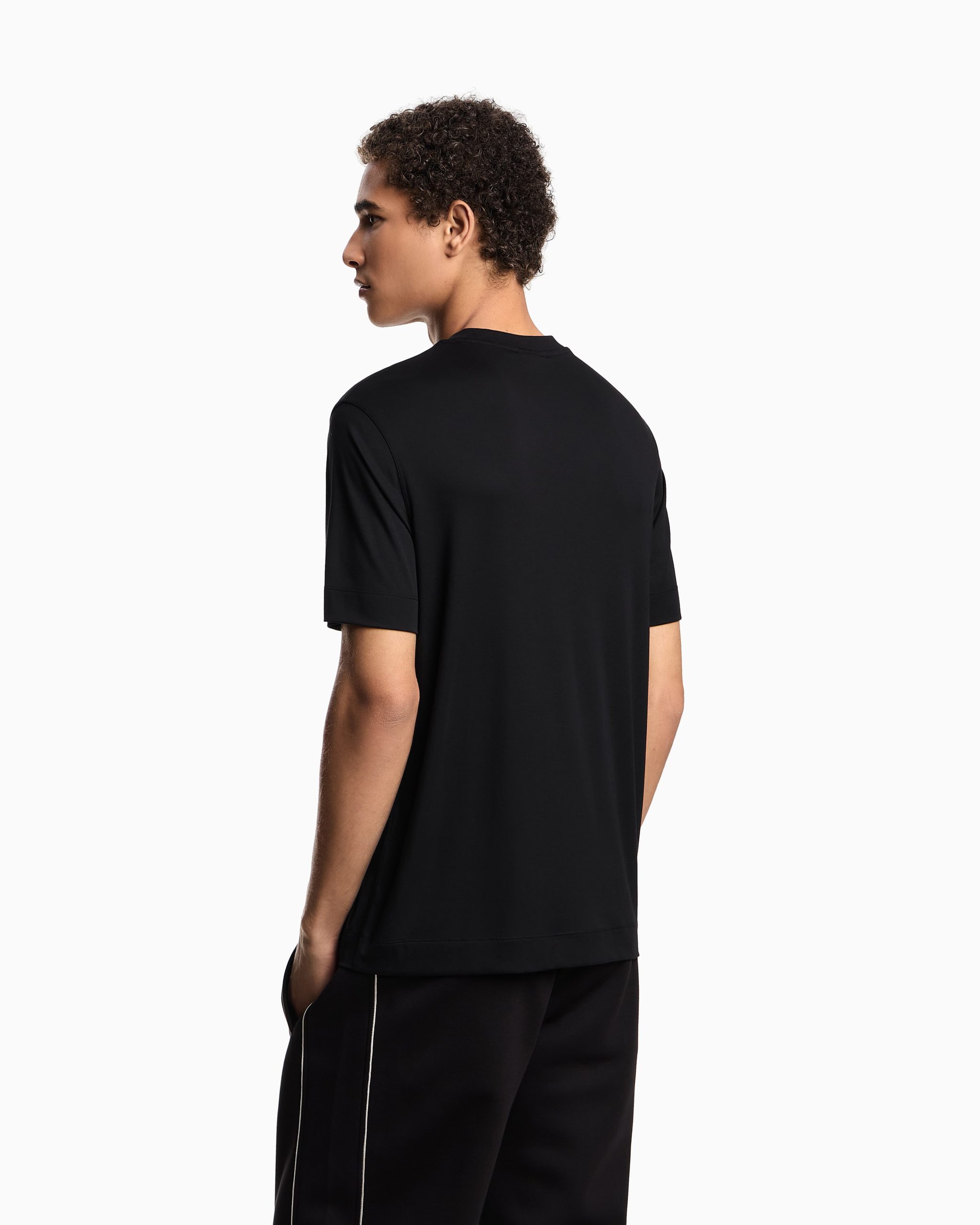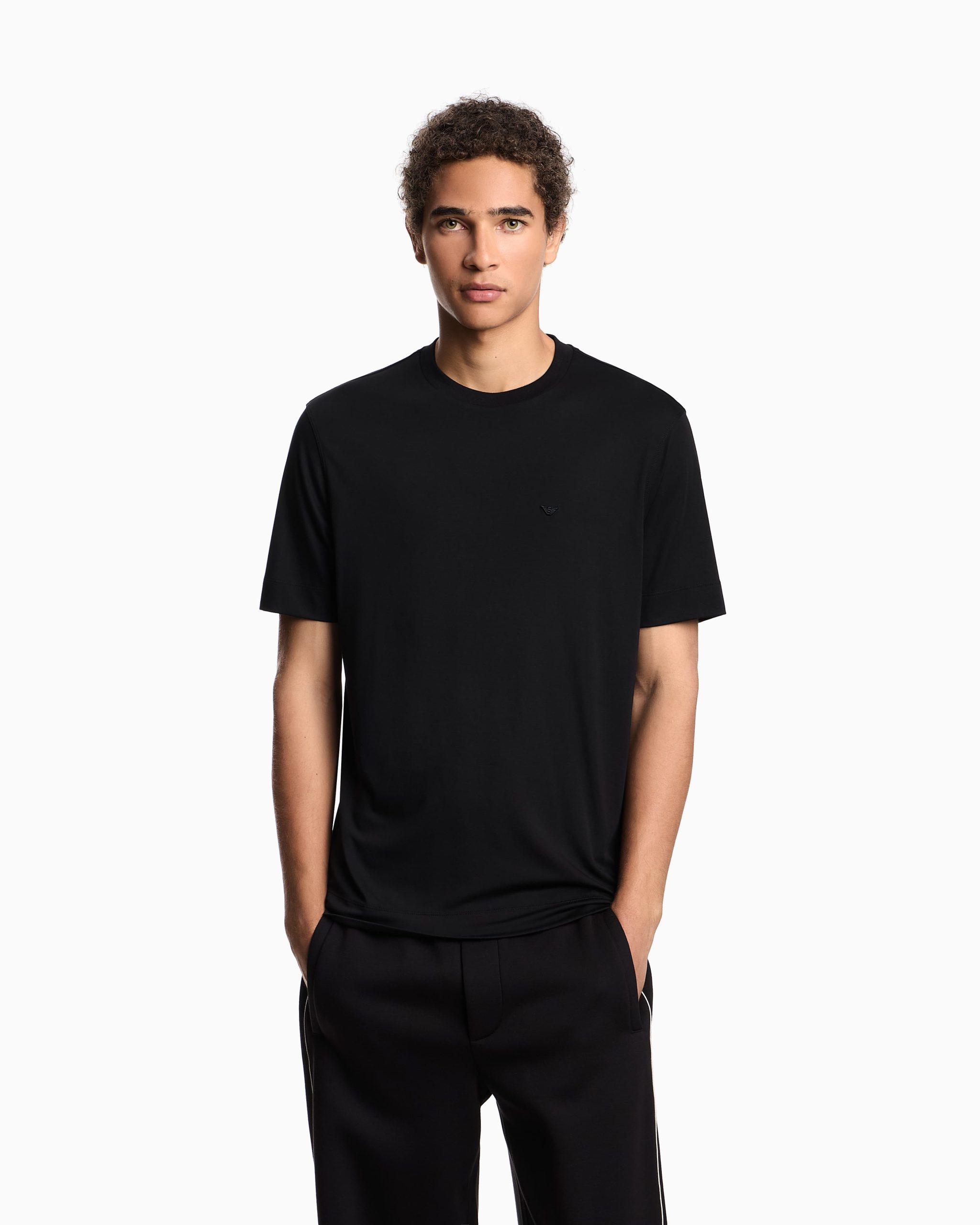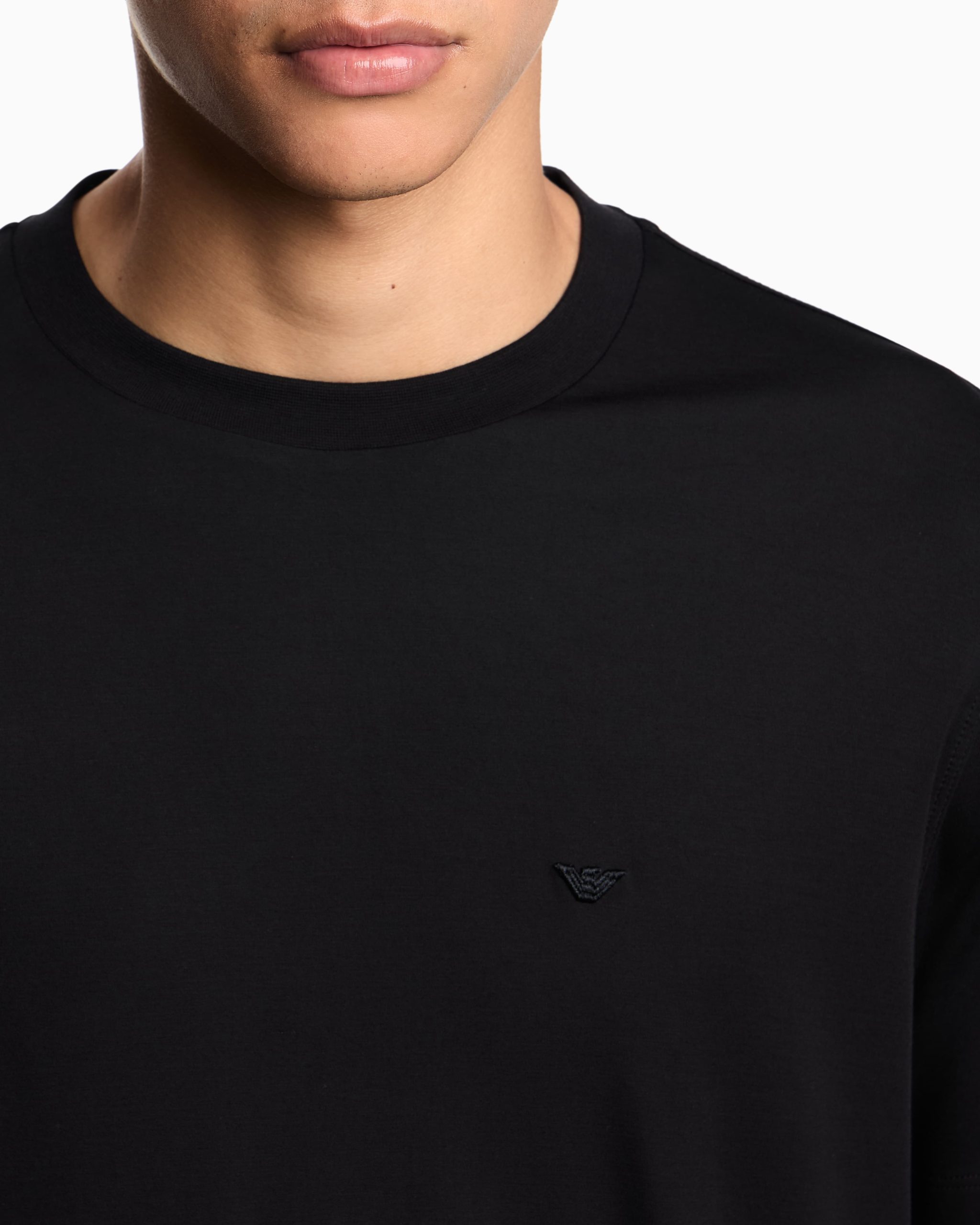 Crew-neck T-shirt with matching-tone micro eagle embroidery on the chest. Made from modal jersey, an exceptionally fluid and draping fabric with a particularly lightweight and smooth texture.