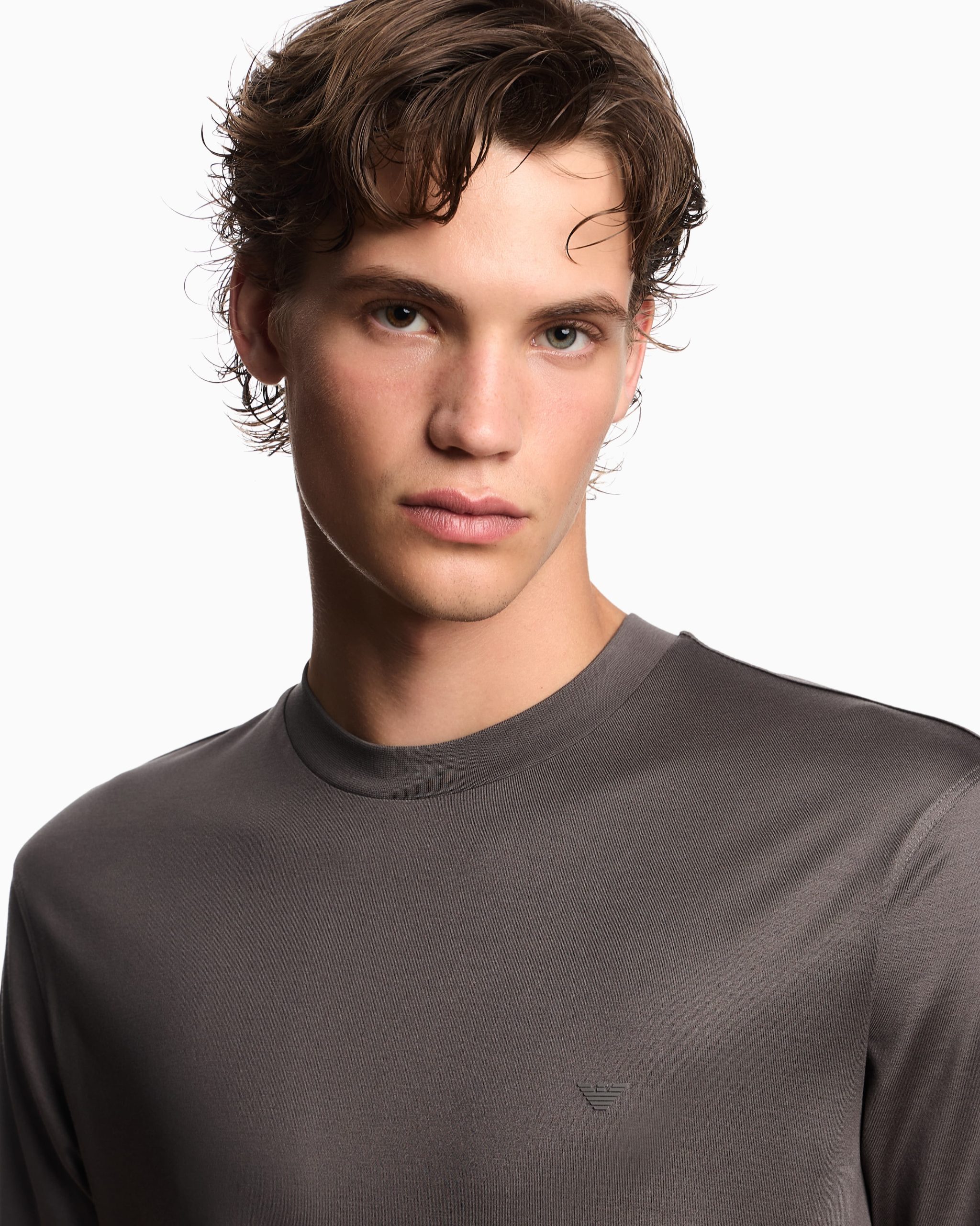 Cotton and Lyocell blend jersey crew-neck T-shirt. The matching, micro eagle embroidery on the chest completes the style with distinction. The piece belongs to the Travel Essentials Autumn/Winter 2025 capsule collection.