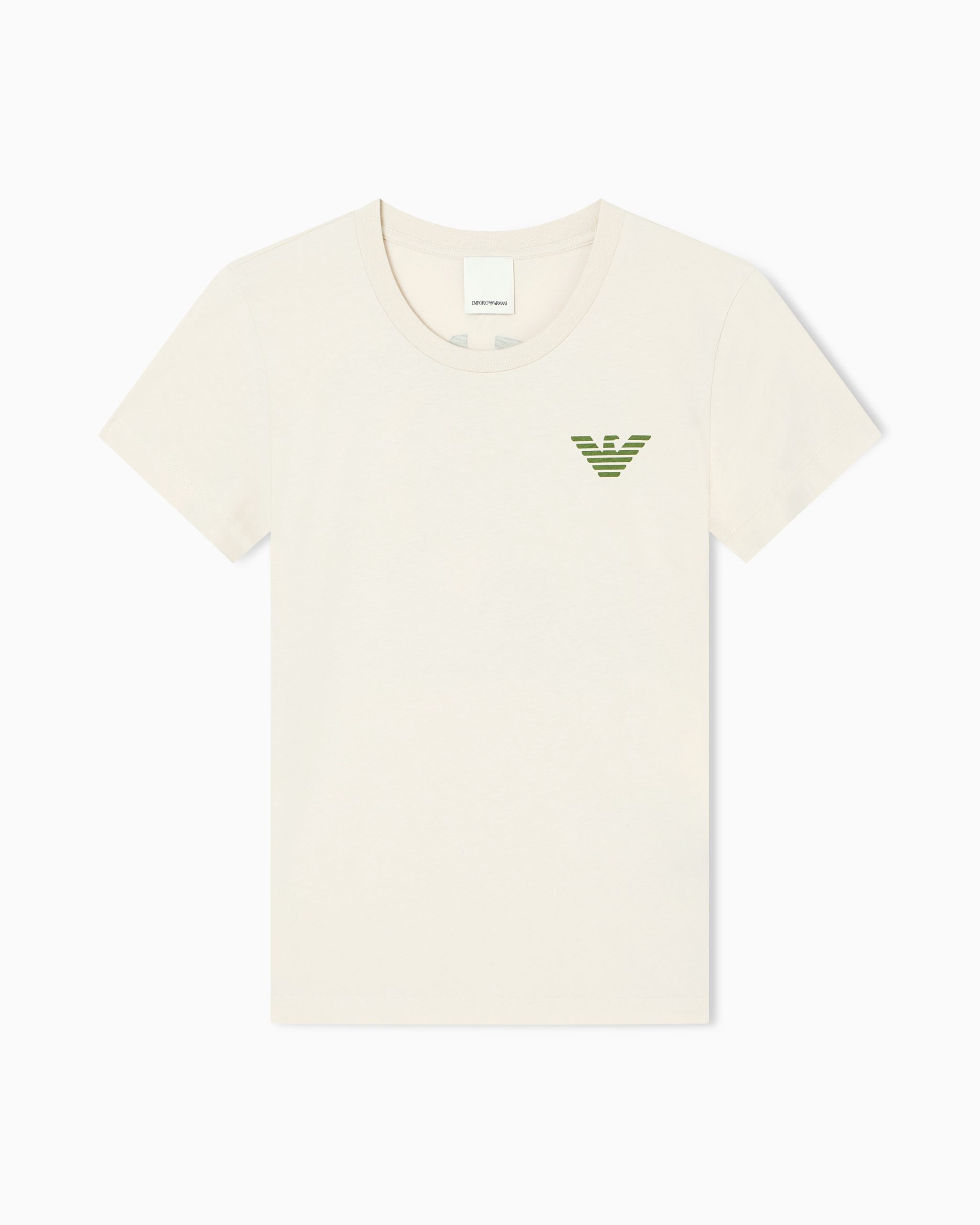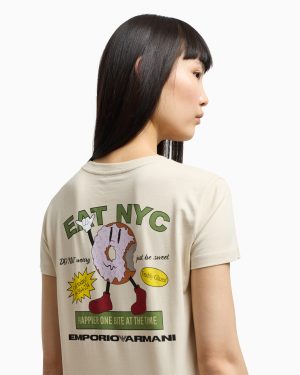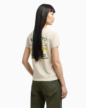 Crew-neck T-shirt in cosy cotton jersey. The item is distinguished by the iconic eagle logo on the chest and oversized collection print on the back. Imagine walking the hectic streets of New York, where every corner tells a story, every street has its own pace. The New York AW25 collection is inspired by this unique energy, intertwining the dynamism of the metropolis with comfort and modern street style.