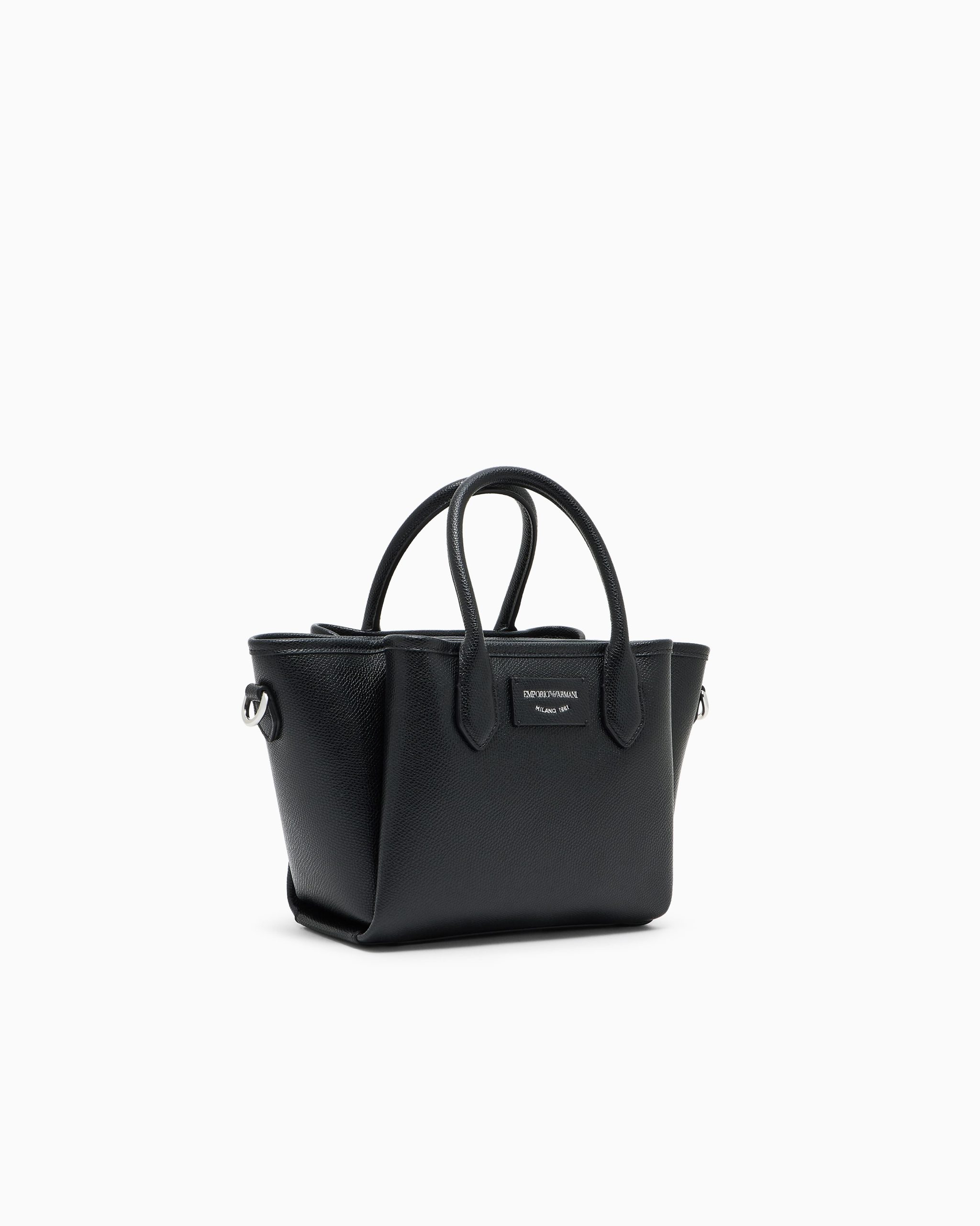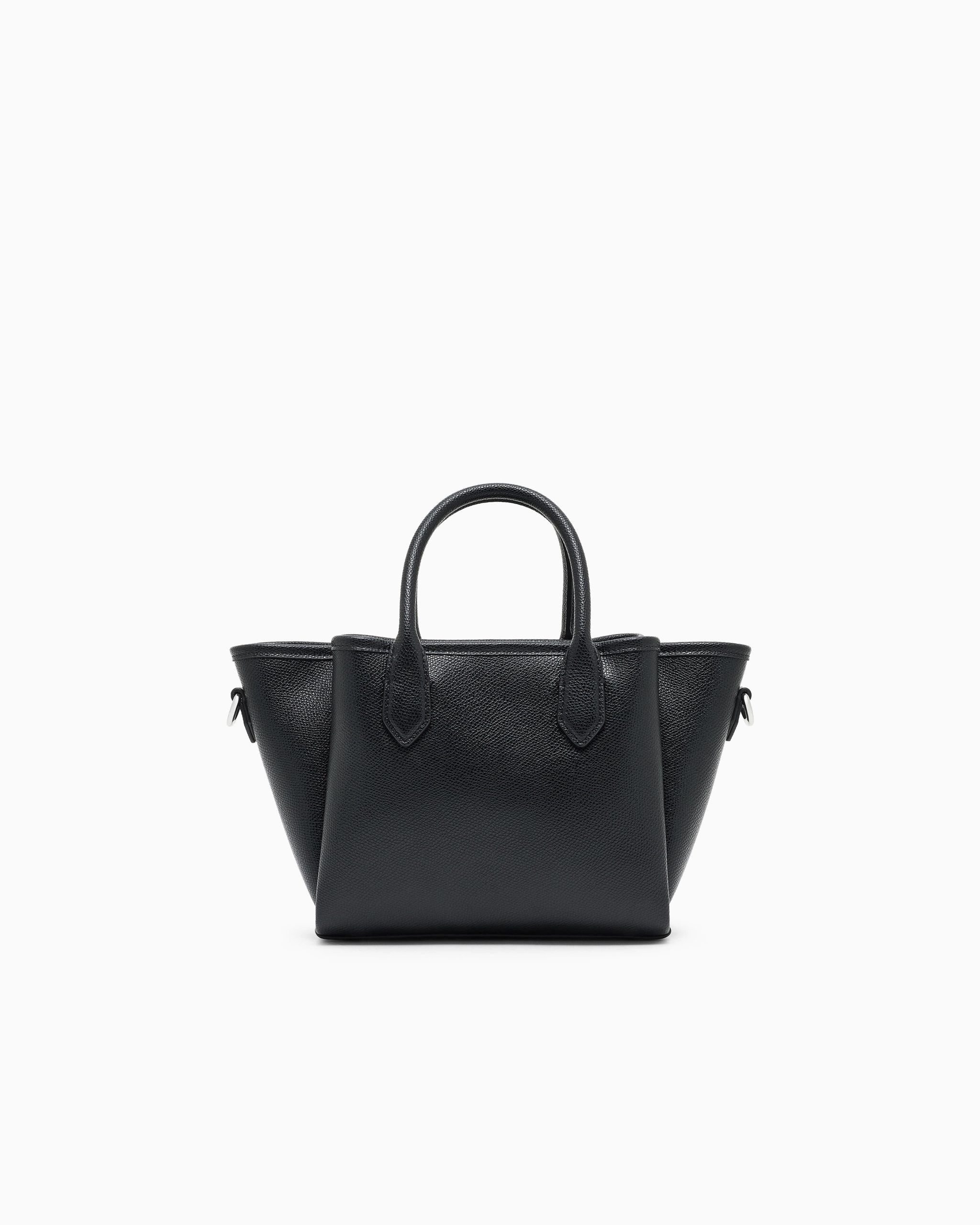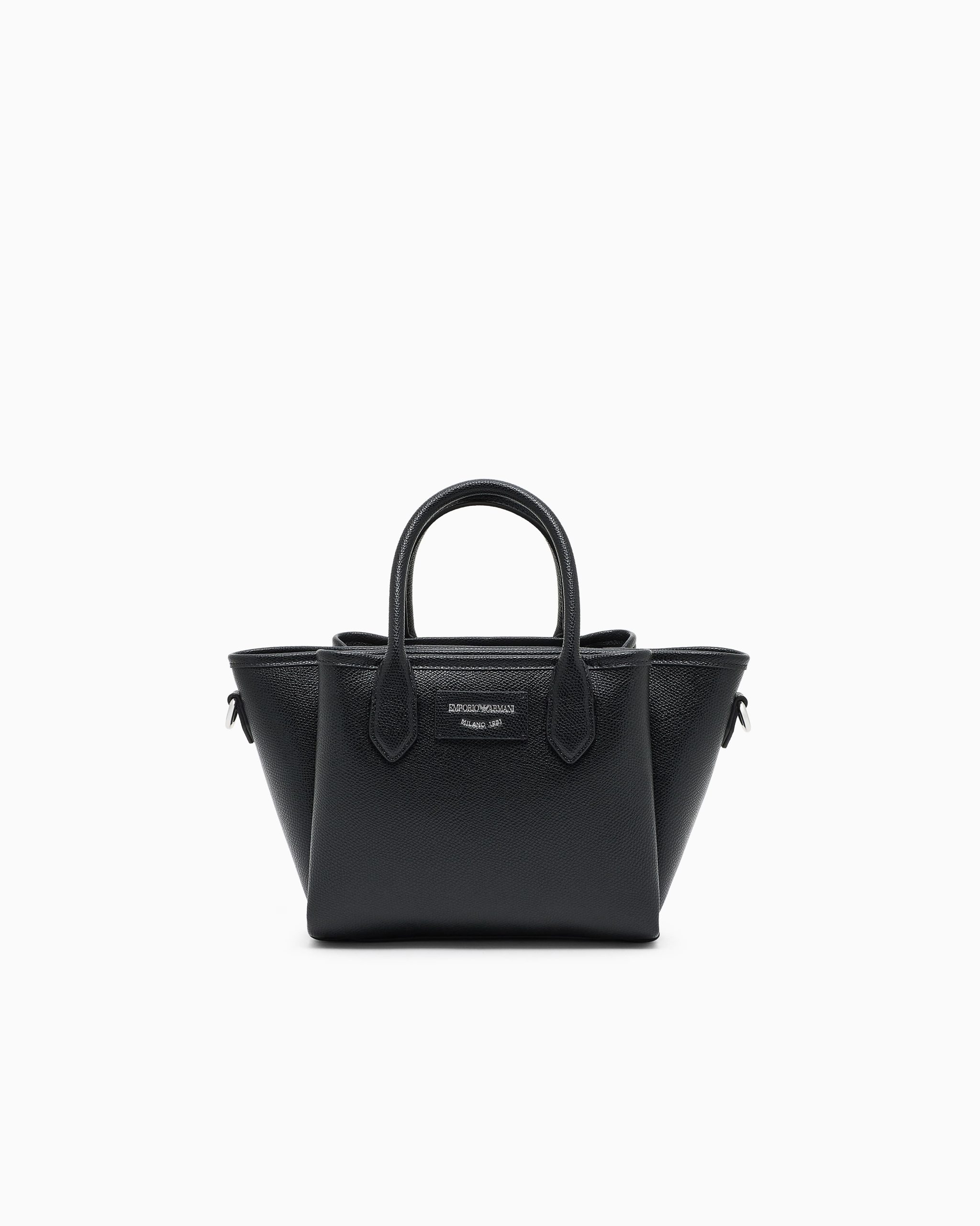 Small shopper bag with double handle and practical detachable shoulder strap. Essential and simple design for a line of accessories that combines style and functionality, perfect for any occasion, from travelling to wearing every day. The screen-printed logo blends with the palmellato-leather finish featured on this selection.