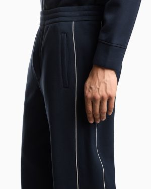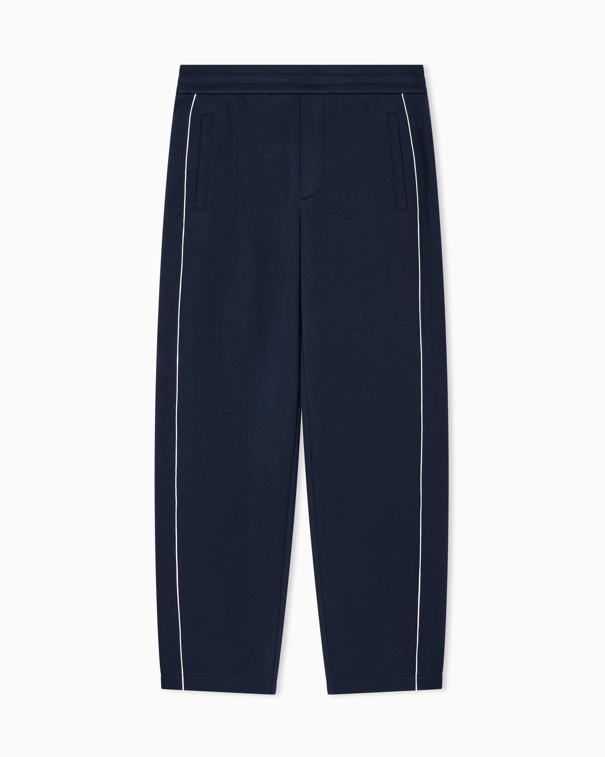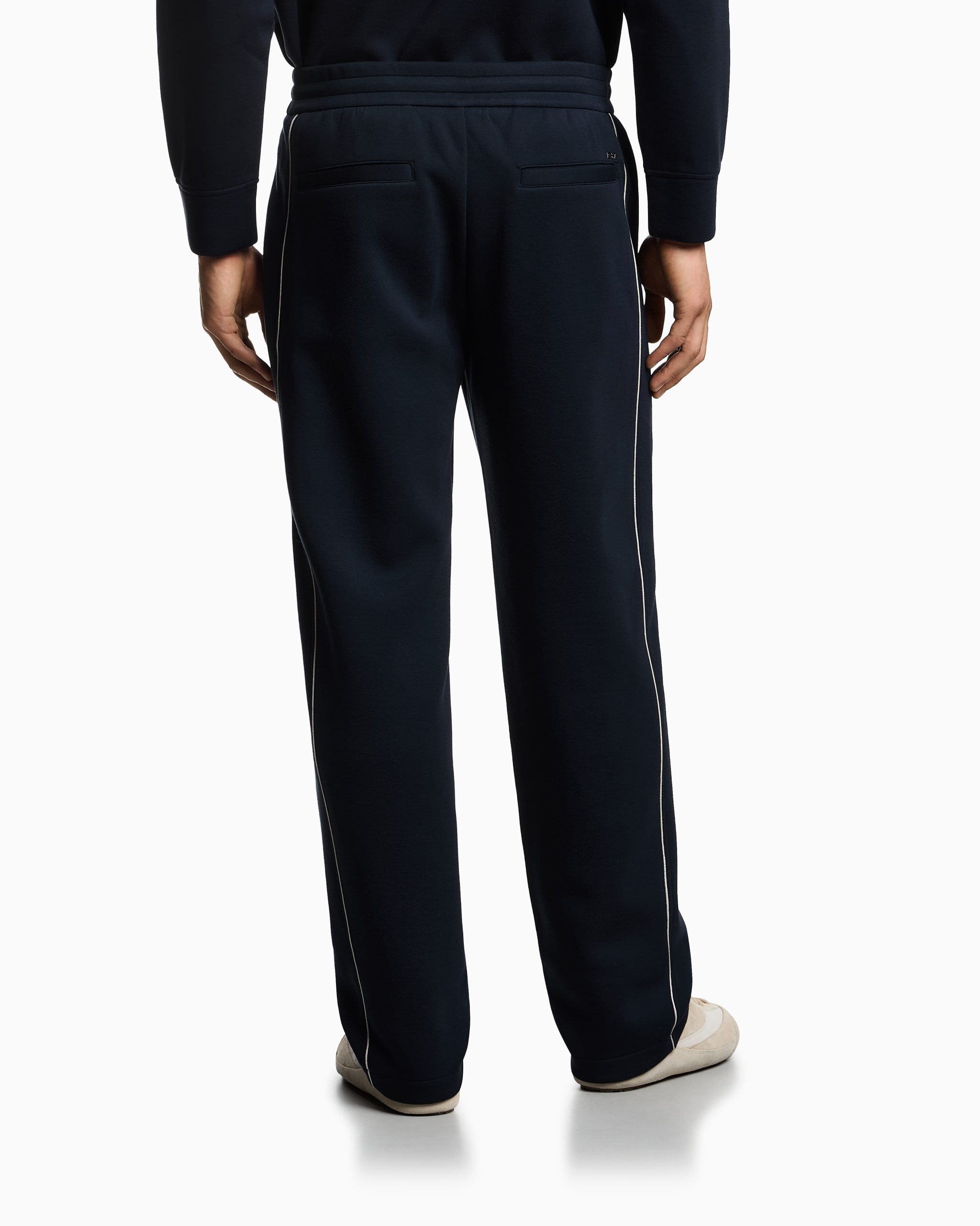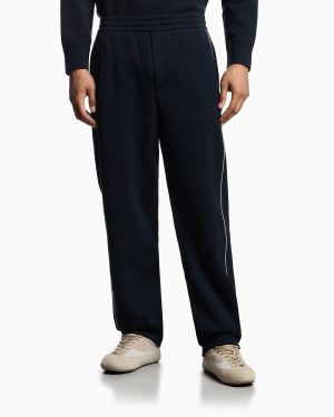 Elasticated-waist trousers with internal drawstring, featuring decorative piping on the sides and made of cosy 100% modal double jersey. The metal EA logo plate on the back completes the piece with understated elegance.
