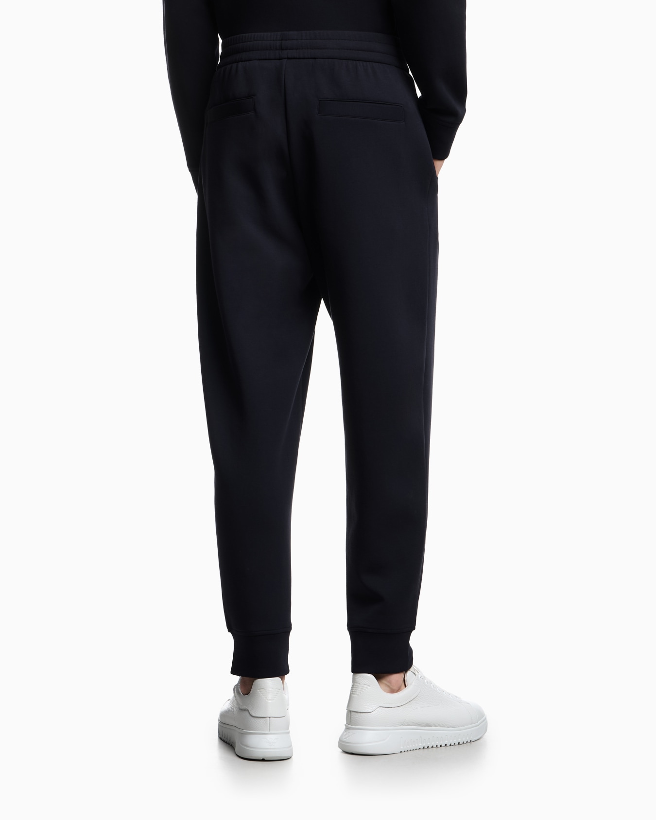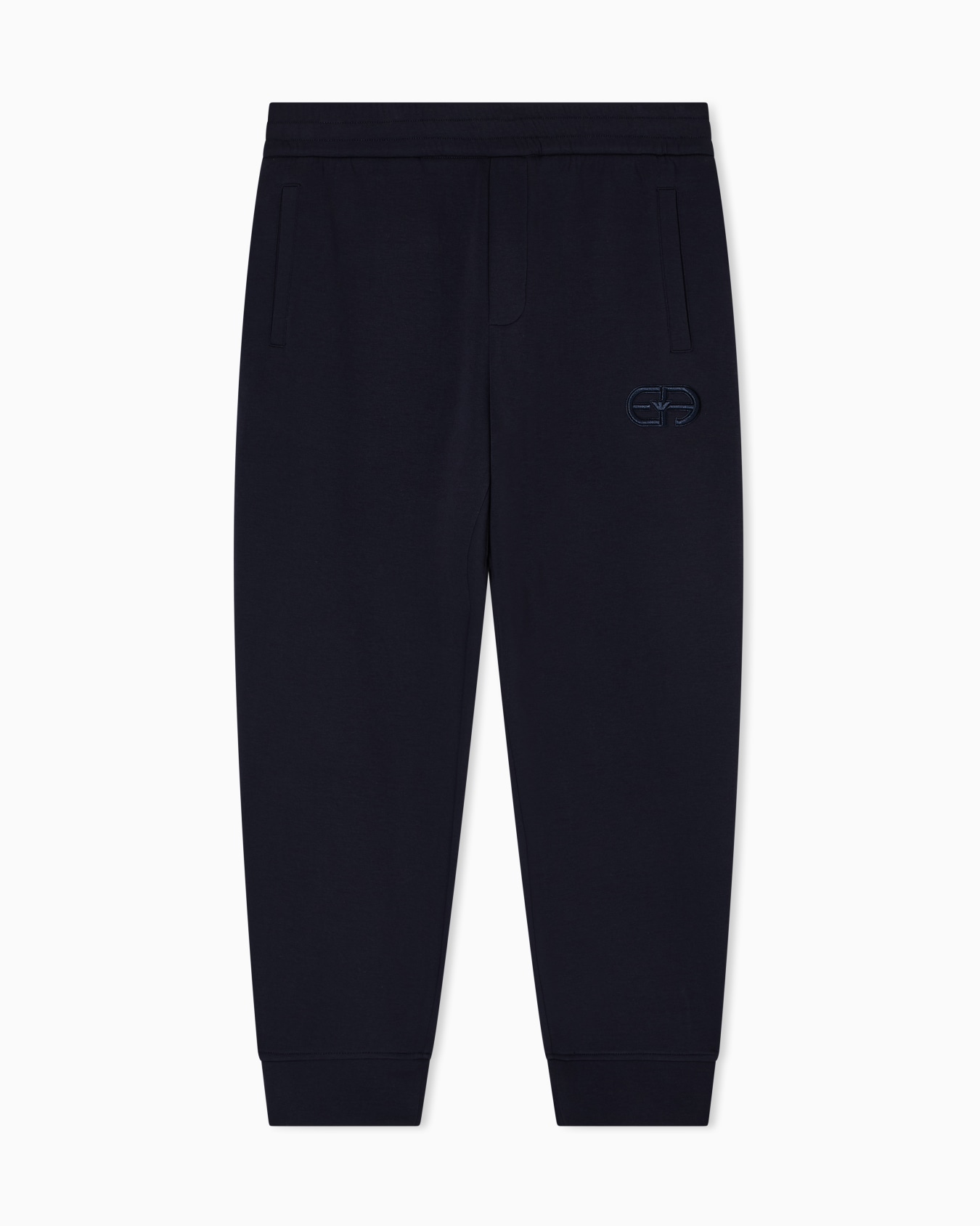 Joggers with practical internal drawstring waist and matching EA logo embroidery. This item belongs to the Essentials clothing selection, the Emporio Armani capsule collection that is an evergreen statement of style: an ongoing collection with clean, well-designed shapes for a wardrobe that meets the demands of any season. These “essential”, versatile pieces are a must-have for the male wardrobe.