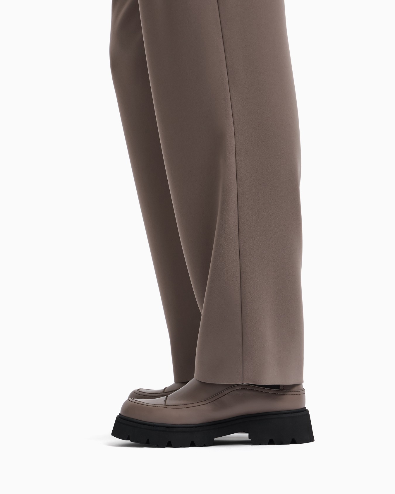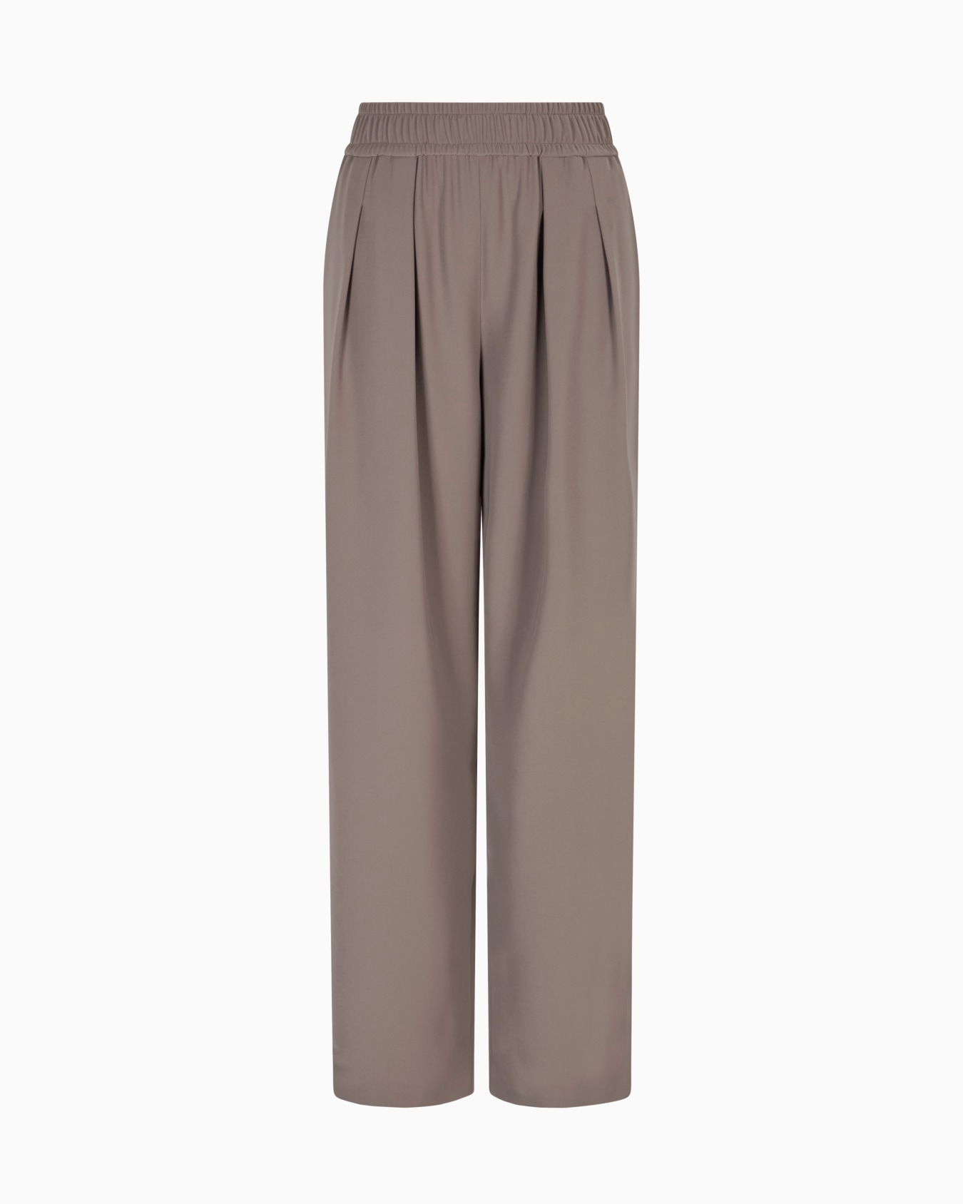 Trousers with pleats and elasticated waist, made of flowing, lightweight technical cady that gently brushes against the skin, offering a flawless look to any silhouette. Designed to respond to the requirements of the well-dressed woman who divides her time between a myriad of tasks.