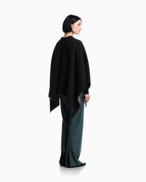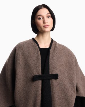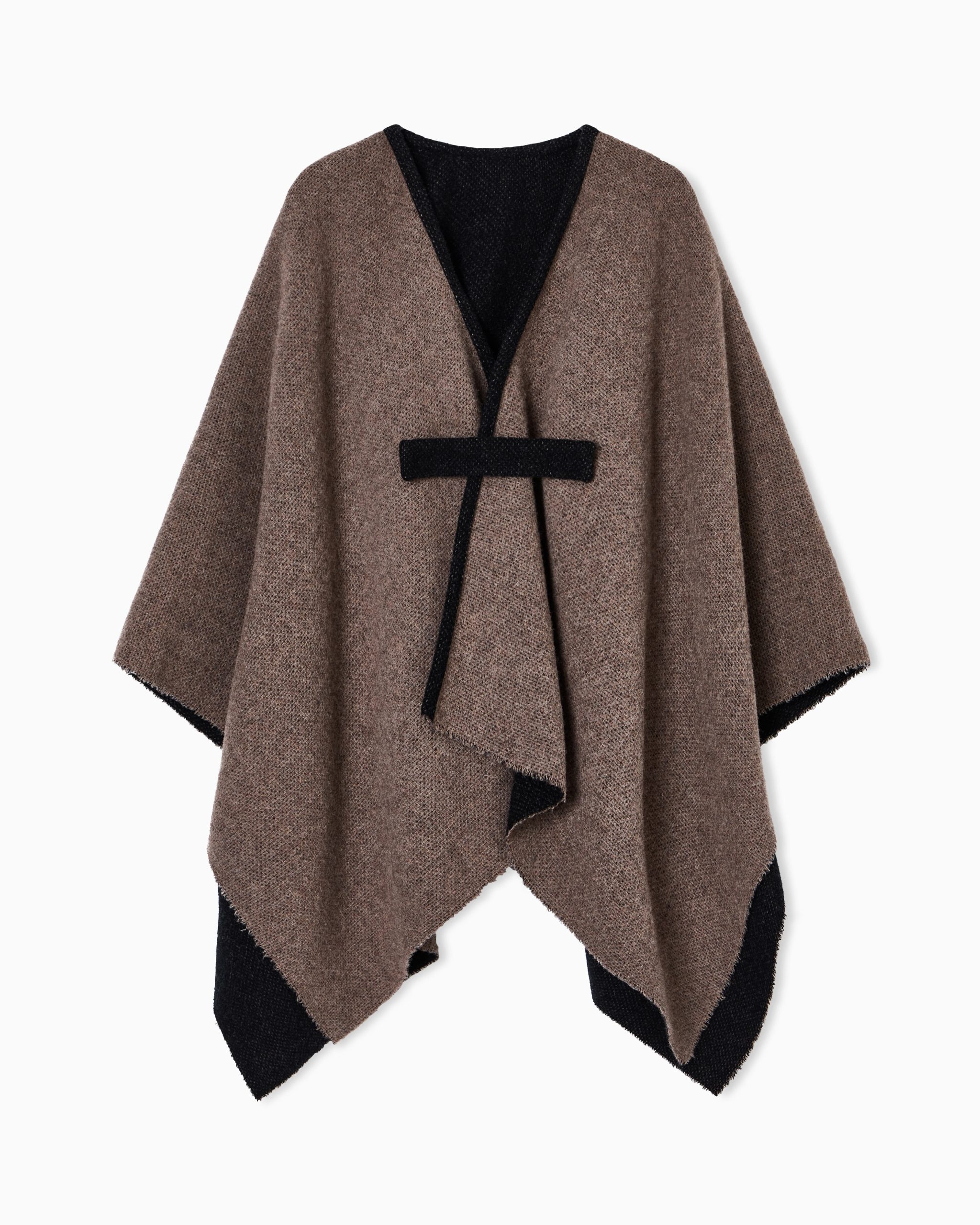 Cape with button closure, made of warm and enveloping pure wool. The contrasting colour design allows for double-sided use that adapts to multiple outfits.